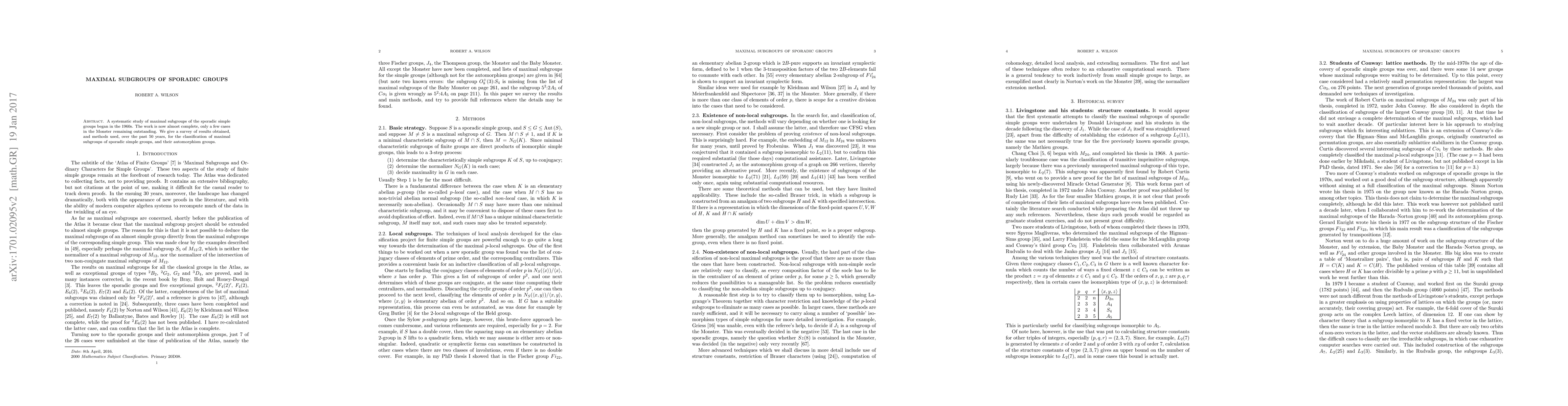 This paper surveys the comprehensive efforts spanning five decades to classify the maximal subgroups of sporadic simple groups, with nearly all cases resolved except for a few remaining in the Monster group. The study outlines the methodologies and results achieved in understanding these subgroups and their automorphism groups.