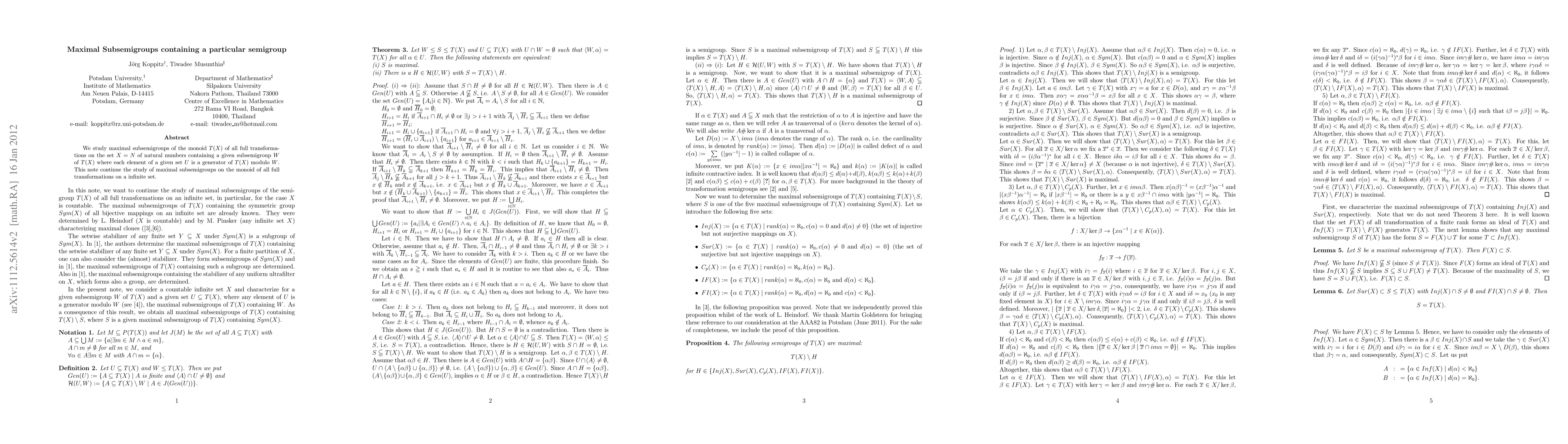We study maximal subsemigroups of the monoid T(X) of all full transformations on the set X=N of natural numbers containing a given subsemigroup W of T(X) where each element of a given set $U$ is a generator of T(X) modulo W. This note continue the study of maximal subsemigroups on the monoid of all full transformations on a infinite set.