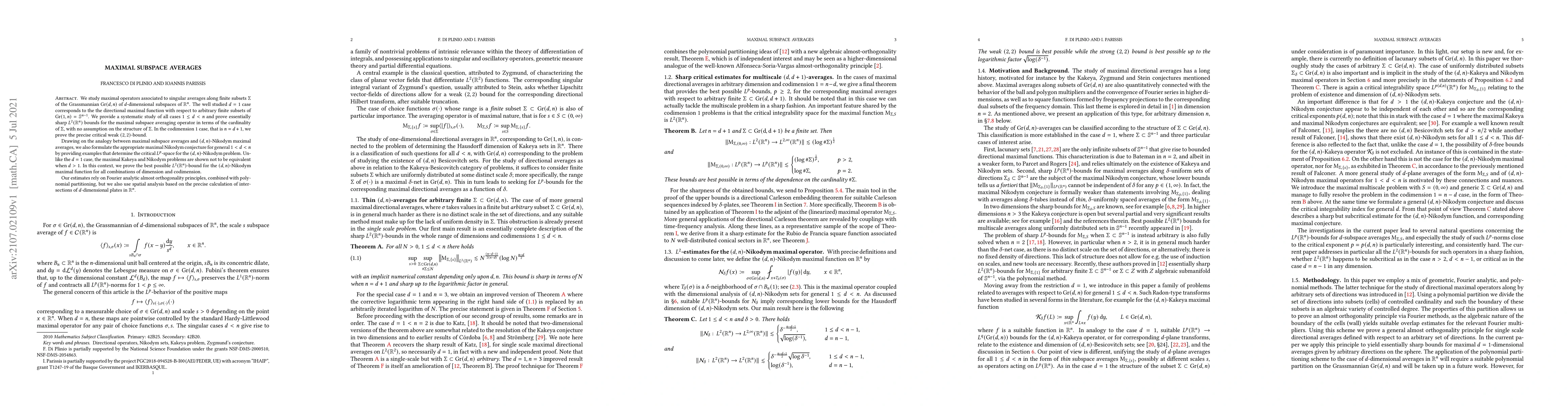 subspaces of $\mathbb R^n$. The well studied $d=1$ case corresponds to the the