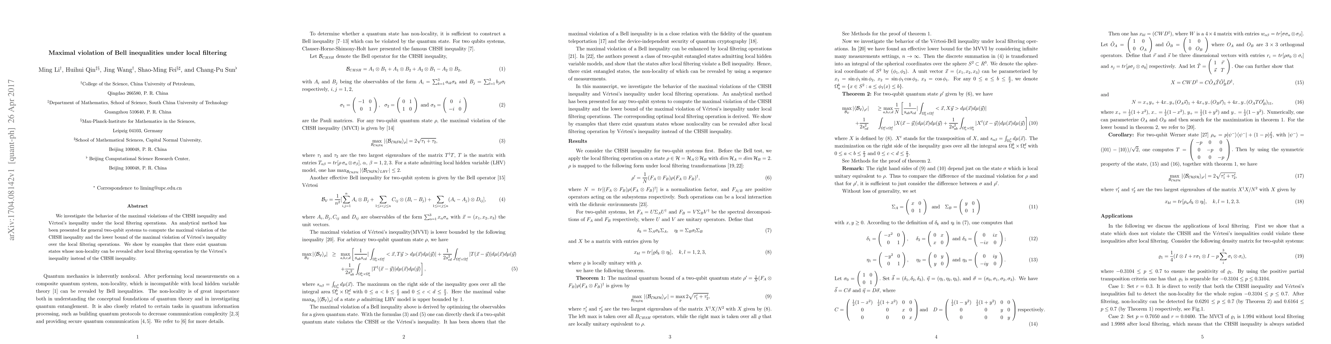 This paper investigates how local filtering operations affect the maximal violations of Bell inequalities in quantum systems, revealing new cases where non-locality can be detected after local filtering.