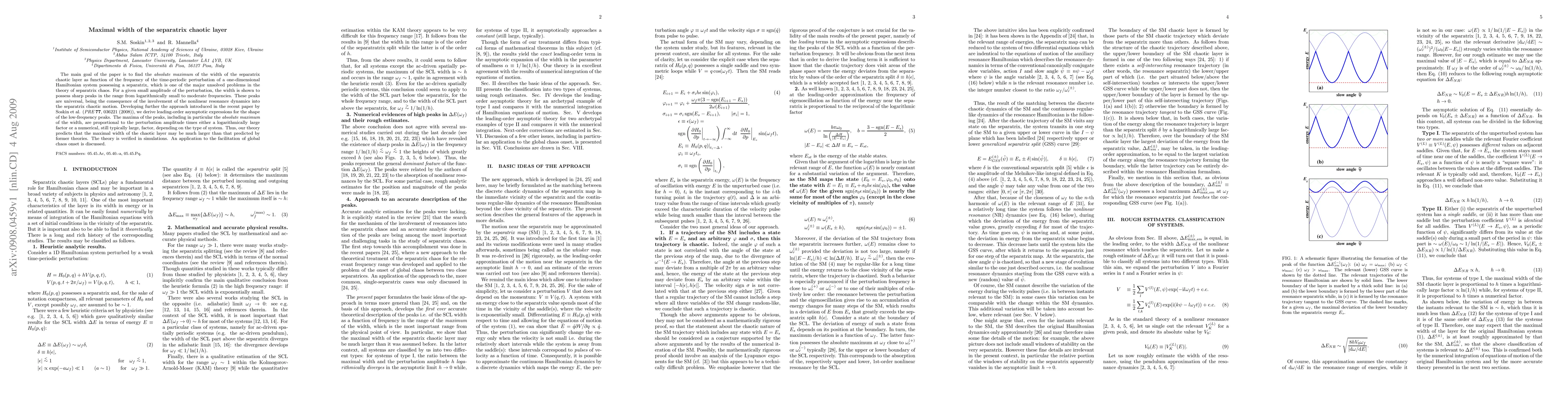 This paper investigates the maximal width of the chaotic layer in a one-dimensional Hamiltonian system under time-periodic perturbation, revealing sharp peaks in width that are universal due to nonlinear resonance dynamics. The derived theory predicts significantly larger maximal widths than previous theories, verified through simulations, and discusses its implications for global chaos onset.