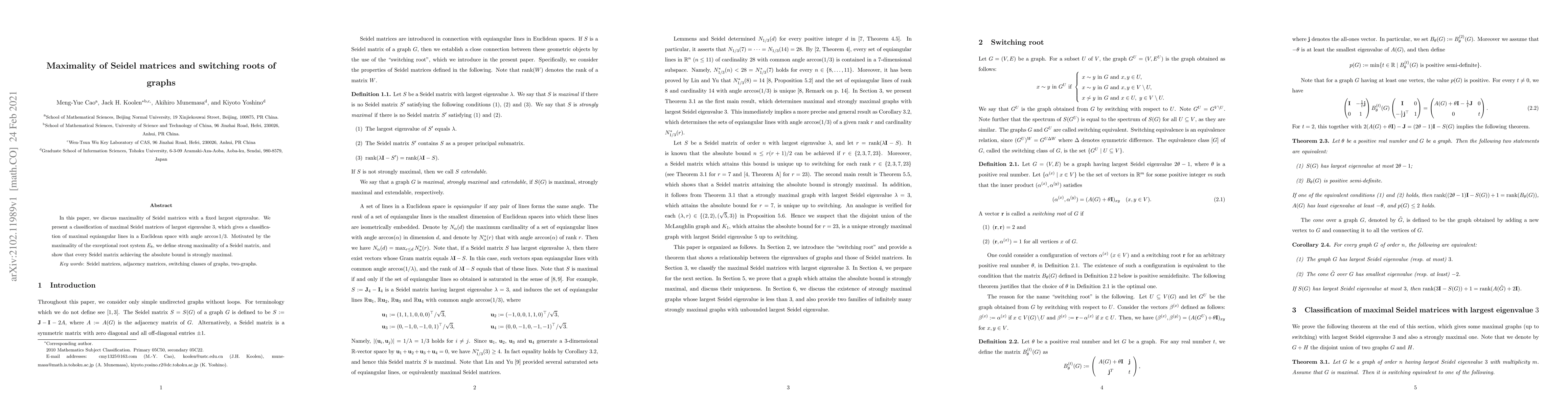 This paper classifies maximal Seidel matrices with the largest eigenvalue of $3$, relating them to maximal equiangular lines in Euclidean space. It introduces strong maximality for Seidel matrices and proves that any Seidel matrix reaching the absolute bound is strongly maximal, inspired by the exceptional root system $E_8$.