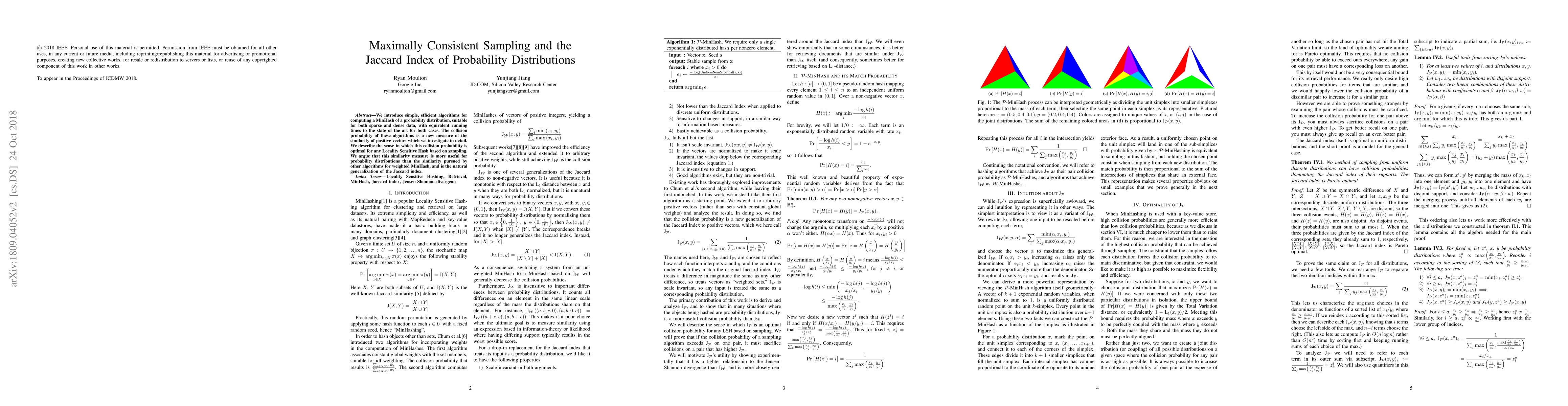 We introduce simple, efficient algorithms for computing a MinHash of a probability distribution, suitable for both sparse and dense data, with equivalent running times to the state of the art for both cases. The collision probability of these algorithms is a new measure of the similarity of positive vectors which we investigate in detail. We describe the sense in which this collision probability is optimal for any Locality Sensitive Hash based on sampling. We argue that this similarity measure is more useful for probability distributions than the similarity pursued by other algorithms for weighted MinHash, and is the natural generalization of the Jaccard index.