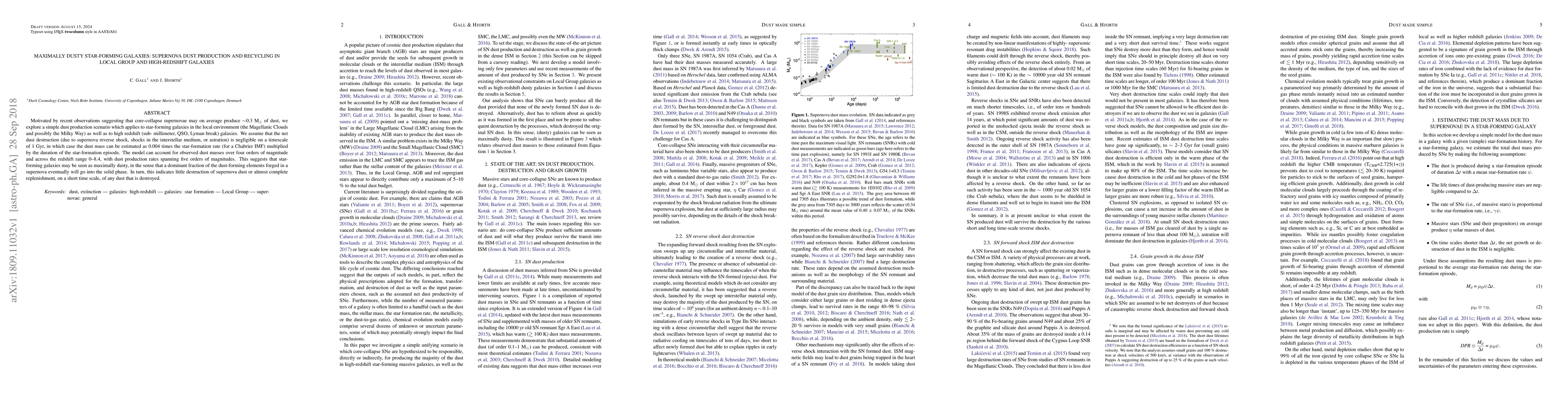 This paper investigates supernova dust production in both local and high-redshift star-forming galaxies, finding that core-collapse supernovae produce ~0.3 M_sun of dust on average. The model suggests that star-forming galaxies recycle dust efficiently, with little destruction, leading to a significant dust mass over a wide range of redshifts.