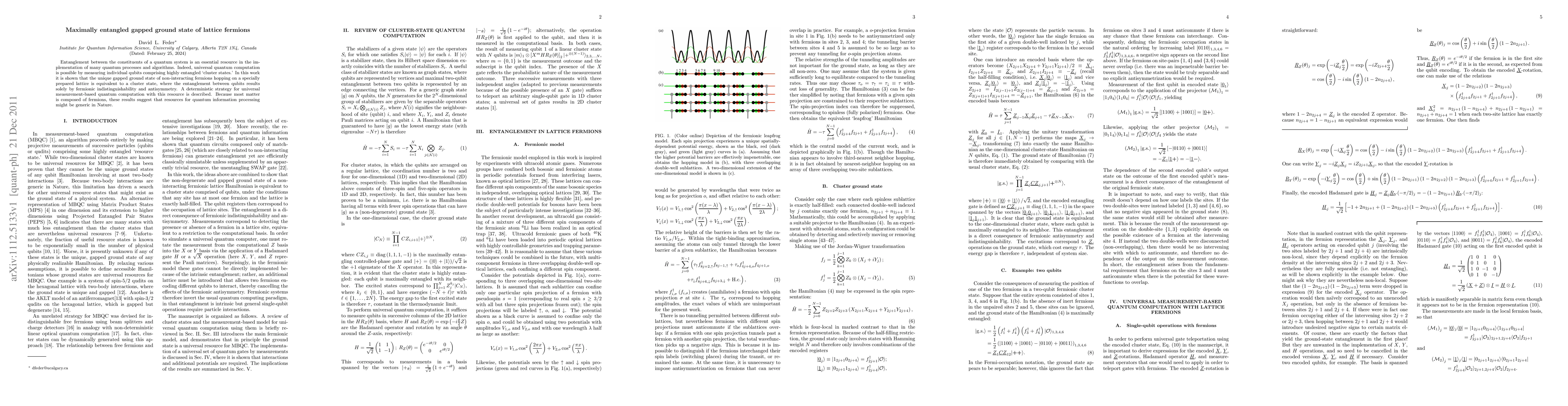 This research demonstrates that the ground state of non-interacting fermions on a specific lattice is equivalent to a cluster state, crucial for quantum computation. It suggests that resources for quantum information processing could be inherent in nature due to fermionic indistinguishability and antisymmetry.
