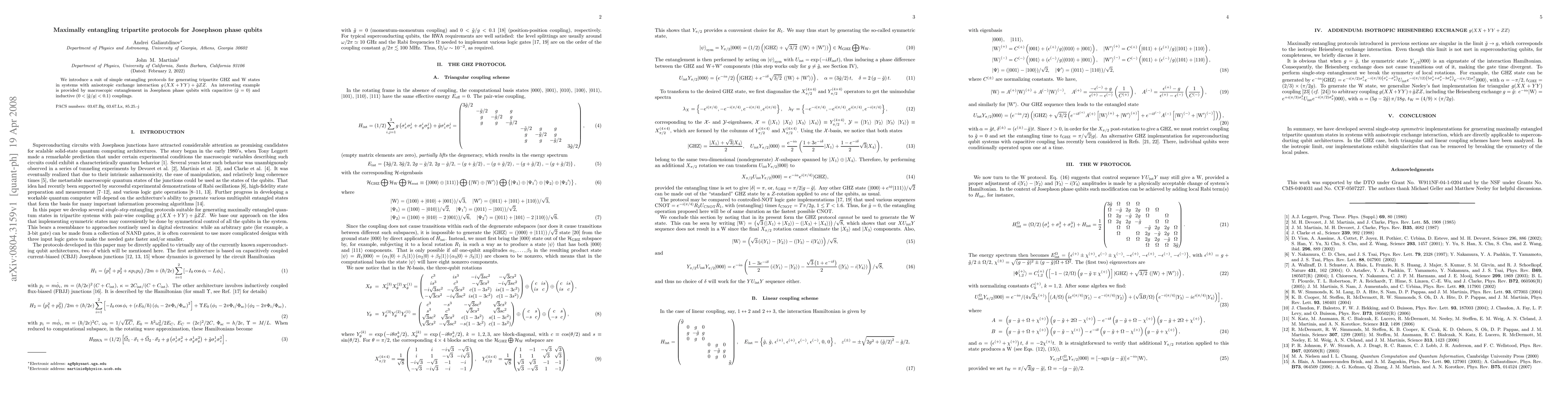 We introduce a suit of simple entangling protocols for generating tripartite GHZ and W states in systems with anisotropic exchange interaction g(XX+YY)+g'ZZ. An interesting example is provided by macroscopic entanglement in Josephson phase qubits with capacitive (g'=0) and inductive (0<|g'/g|<0.1) couplings.