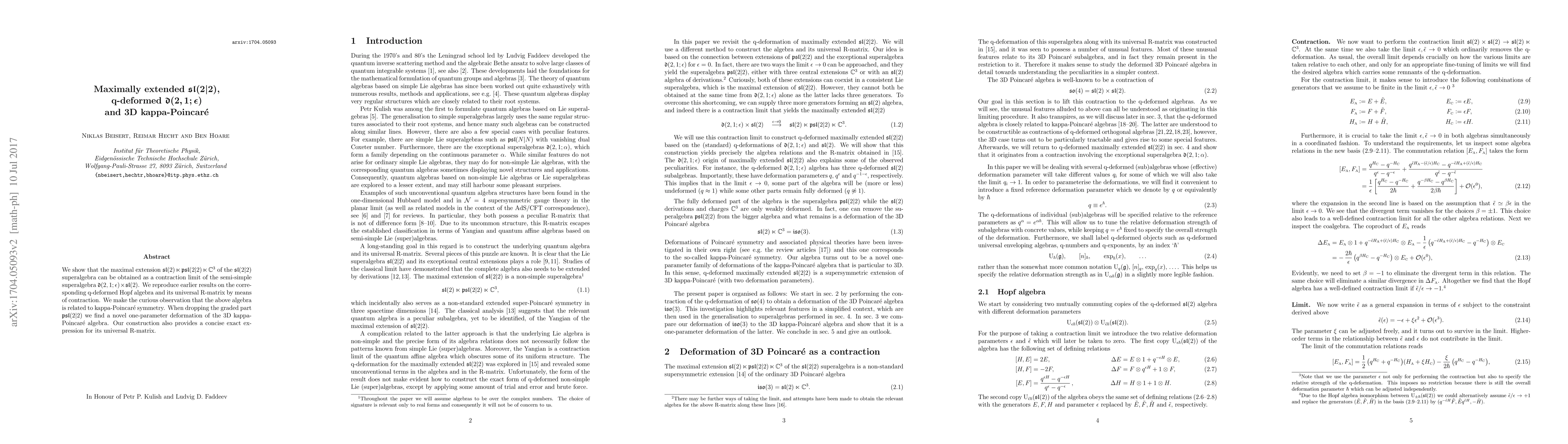 This paper demonstrates the maximal extension of the sl(2|2) superalgebra through a contraction limit from d(2,1;epsilon) times sl(2), revealing connections to q-deformed Hopf algebras and kappa-Poincaré symmetry. It also introduces a novel deformation of the 3D kappa-Poincaré algebra, providing an exact expression for its universal R-matrix.