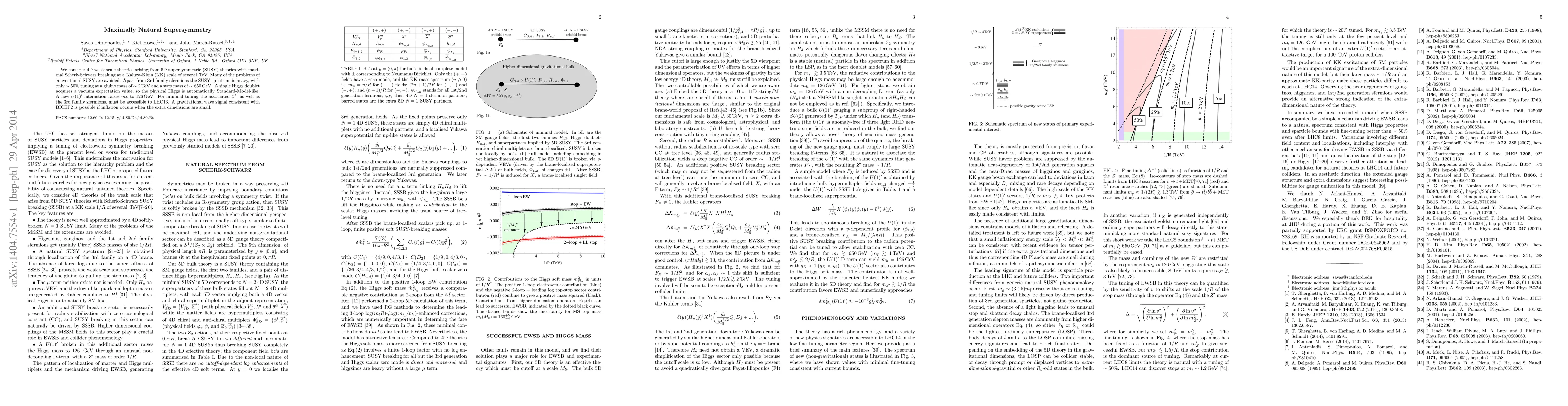 We consider 4D weak scale theories arising from 5D supersymmetric (SUSY) theories with maximal Scherk-Schwarz breaking at a Kaluza-Klein (KK) scale of several TeV. Many of the problems of conventional SUSY are avoided. Apart from 3rd family sfermions the SUSY spectrum is heavy, with only ~50% tuning at a gluino mass of ~2TeV and a stop mass of ~650 GeV. A single Higgs doublet acquires a vacuum expectation value, so the physical Higgs is automatically Standard-Model-like. A new U(1)' interaction raises the Higgs mass to 126 GeV. For minimal tuning the associated Z', as well as the 3rd family sfermions, must be accessible to LHC13. A gravitational wave signal consistent with BICEP2 is possible if inflation occurs when the extra dimensions are small.