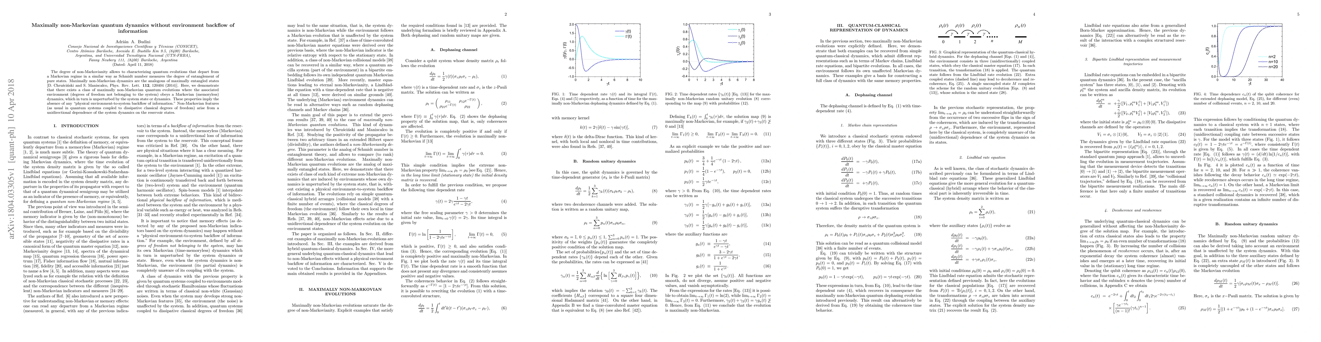 This paper explores maximally non-Markovian quantum dynamics where the environment exhibits Markovian dynamics unaffected by the system, highlighting the absence of any information backflow from the environment to the system. Such dynamics arise from a unidirectional dependence of the system on the reservoir states.