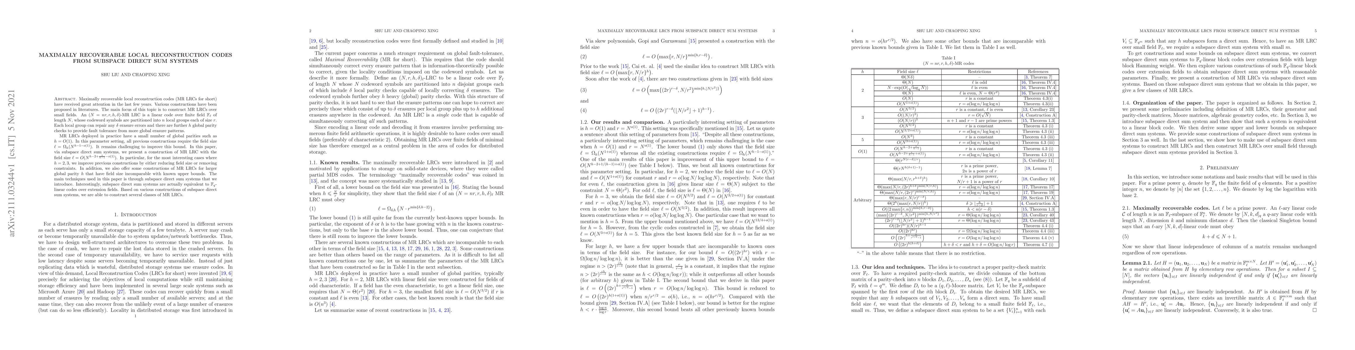 Maximally recoverable local reconstruction codes (MR LRCs for short) have received great attention in the last few years. Various constructions have been proposed in literatures. The main focus of this topic is to construct MR LRCs over small fields. An $(N=nr,r,h,\Gd)$-MR LRC is a linear code over finite field $\F_\ell$ of length $N$, whose codeword symbols are partitioned into $n$ local groups each of size $r$. Each local group can repair any $\Gd$ erasure errors and there are further $h$ global parity checks to provide fault tolerance from more global erasure patterns. MR LRCs deployed in practice have a small number of global parities such as $h=O(1)$. In this parameter setting, all previous constructions require the field size $\ell =\Omega_h (N^{h-1-o(1)})$. It remains challenging to improve this bound. In this paper, via subspace direct sum systems, we present a construction of MR LRC with the field size $\ell= O(N^{h-2+\frac1{h-1}-o(1)})$. In particular, for the most interesting cases where $h=2,3$, we improve previous constructions by either reducing field size or removing constraints. In addition, we also offer some constructions of MR LRCs for larger global parity $h$ that have field size incomparable with known upper bounds. The main techniques used in this paper is through subspace direct sum systems that we introduce. Interestingly, subspace direct sum systems are actually equivalent to $\F_q$-linear codes over extension fields. Based on various constructions of subspace direct sum systems, we are able to construct several classes of MR LRCs.