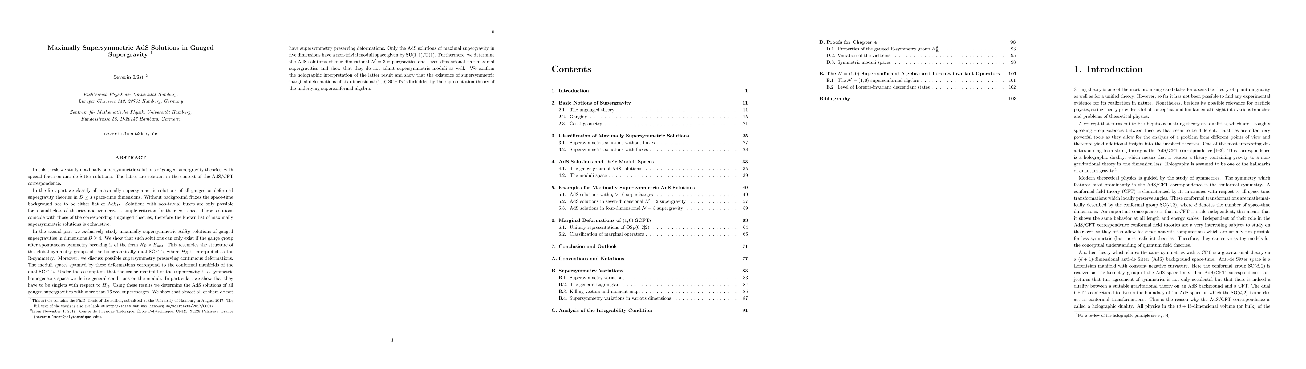 This paper classifies maximally supersymmetric solutions in gauged supergravity theories, with an emphasis on anti-de Sitter (AdS) solutions relevant for the AdS/CFT correspondence. It explores the structure of gauge groups and supersymmetry-preserving deformations in dimensions $D \geq 4$.