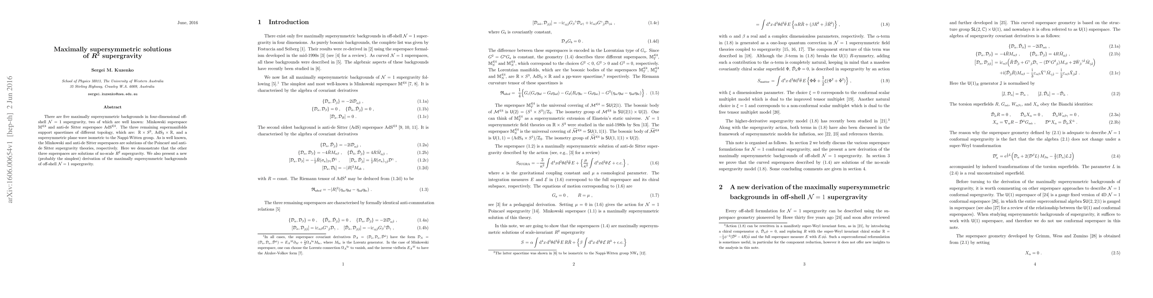 This paper identifies five maximally supersymmetric solutions in four-dimensional off-shell N=1 supergravity, including the well-known Minkowski and anti-de Sitter superspaces, and three additional supermanifolds with distinct topologies. It demonstrates that these three new solutions arise from no-scale $R^2$ supergravity and provides a simplified derivation of all maximally supersymmetric backgrounds.