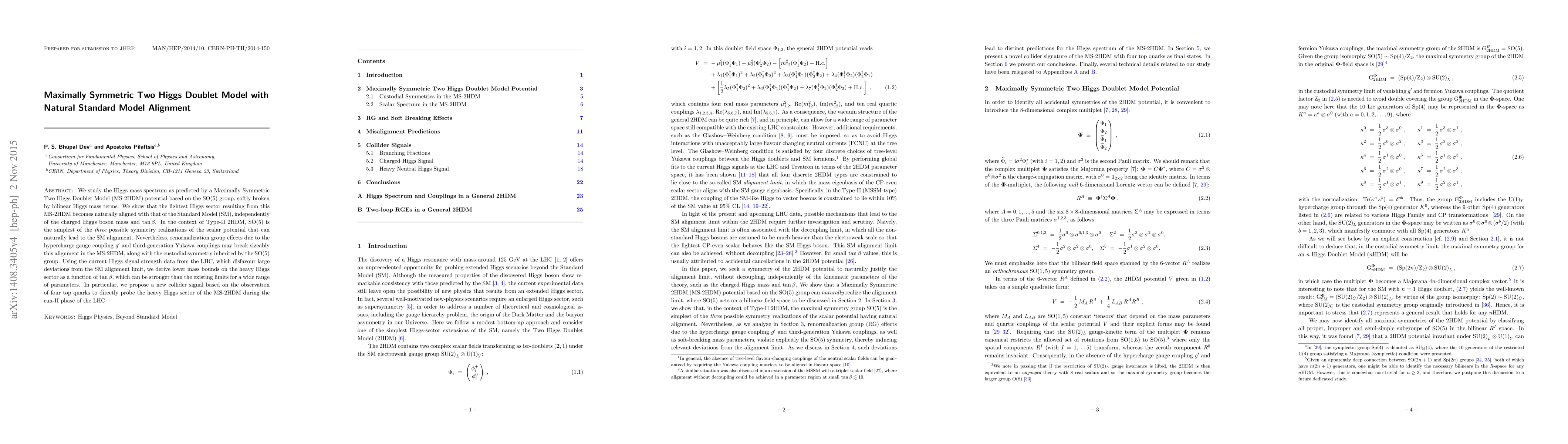 This paper investigates a Maximally Symmetric Two Higgs Doublet Model (MS-2HDM) based on SO(5) symmetry, showing that the lightest Higgs naturally aligns with the Standard Model. It proposes a new collider signal involving four top quarks to probe the heavy Higgs sector, deriving mass bounds that can surpass existing limits.