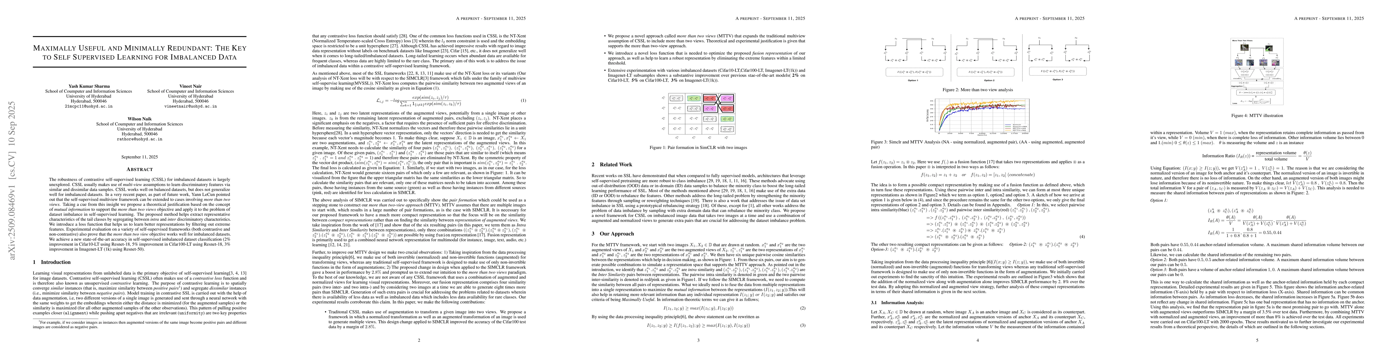 The robustness of contrastive self-supervised learning (CSSL) for imbalanced datasets is largely unexplored. CSSL usually makes use of \emph{multi-view} assumptions to learn discriminatory features via similar and dissimilar data samples. CSSL works well on balanced datasets, but does not generalize well for imbalanced datasets. In a very recent paper, as part of future work, Yann LeCun pointed out that the self-supervised multiview framework can be extended to cases involving \emph{more than two views}. Taking a cue from this insight we propose a theoretical justification based on the concept of \emph{mutual information} to support the \emph{more than two views} objective and apply it to the problem of dataset imbalance in self-supervised learning. The proposed method helps extract representative characteristics of the tail classes by segregating between \emph{intra} and \emph{inter} discriminatory characteristics. We introduce a loss function that helps us to learn better representations by filtering out extreme features. Experimental evaluation on a variety of self-supervised frameworks (both contrastive and non-contrastive) also prove that the \emph{more than two view} objective works well for imbalanced datasets. We achieve a new state-of-the-art accuracy in self-supervised imbalanced dataset classification (2\% improvement in Cifar10-LT using Resnet-18, 5\% improvement in Cifar100-LT using Resnet-18, 3\% improvement in Imagenet-LT (1k) using Resnet-50).