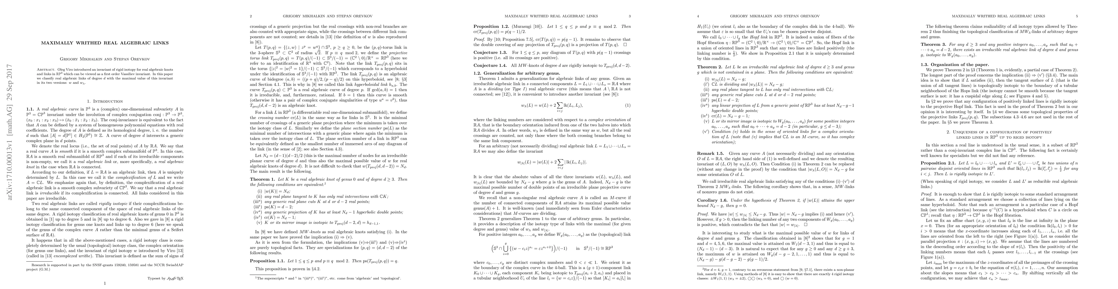 This paper classifies maximally writhed real algebraic links of degree $d$ using an invariant introduced by Oleg Viro, identifying those links with the highest value of this invariant in both $w$ and $w_\lambda$ versions.