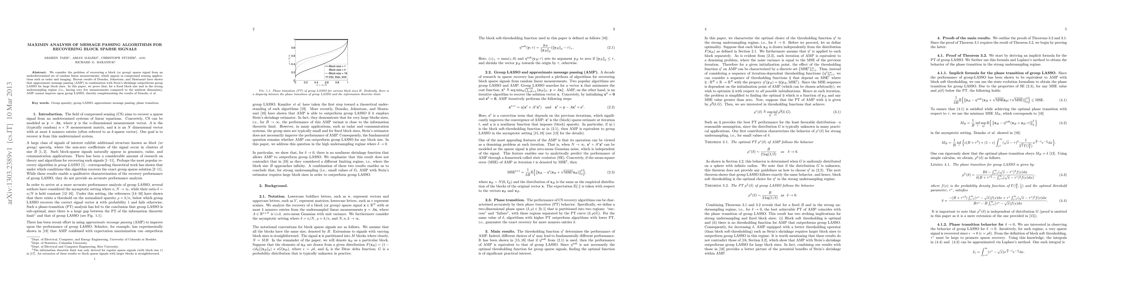 We consider the problem of recovering a block (or group) sparse signal from an underdetermined set of random linear measurements, which appear in compressed sensing applications such as radar and imaging. Recent results of Donoho, Johnstone, and Montanari have shown that approximate message passing (AMP) in combination with Stein's shrinkage outperforms group LASSO for large block sizes. In this paper, we prove that, for a fixed block size and in the strong undersampling regime (i.e., having very few measurements compared to the ambient dimension), AMP cannot improve upon group LASSO, thereby complementing the results of Donoho et al.