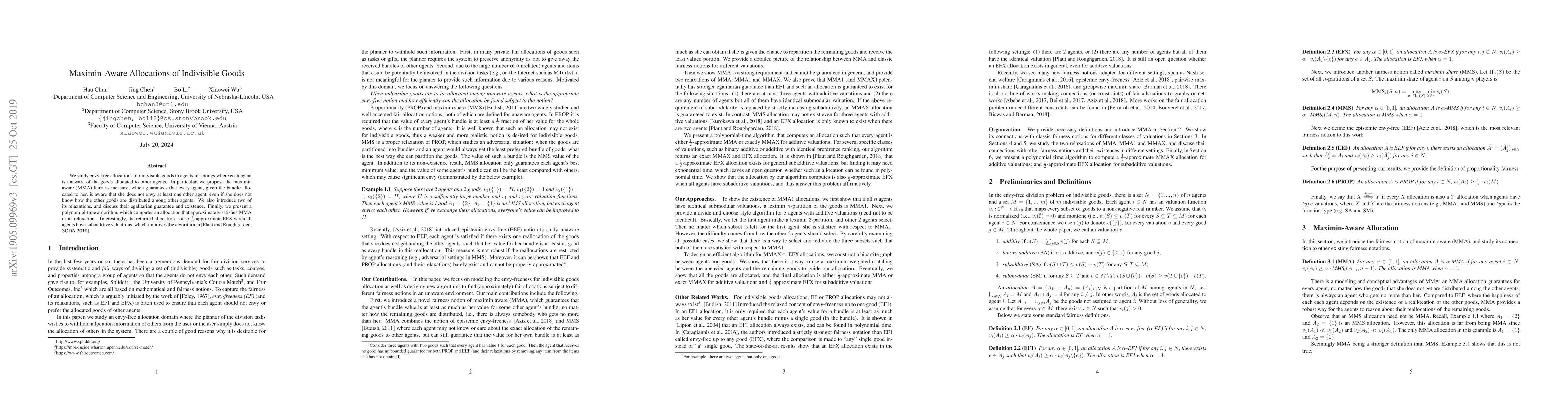 This paper proposes the maximin aware (MMA) fairness measure for allocating indivisible goods in settings where agents are unaware of others' allocations. It presents a polynomial-time algorithm that computes an allocation satisfying MMA or its relaxations, which also provides a 1/2-approximation for envy-freeness (EFX) under subadditive valuations.