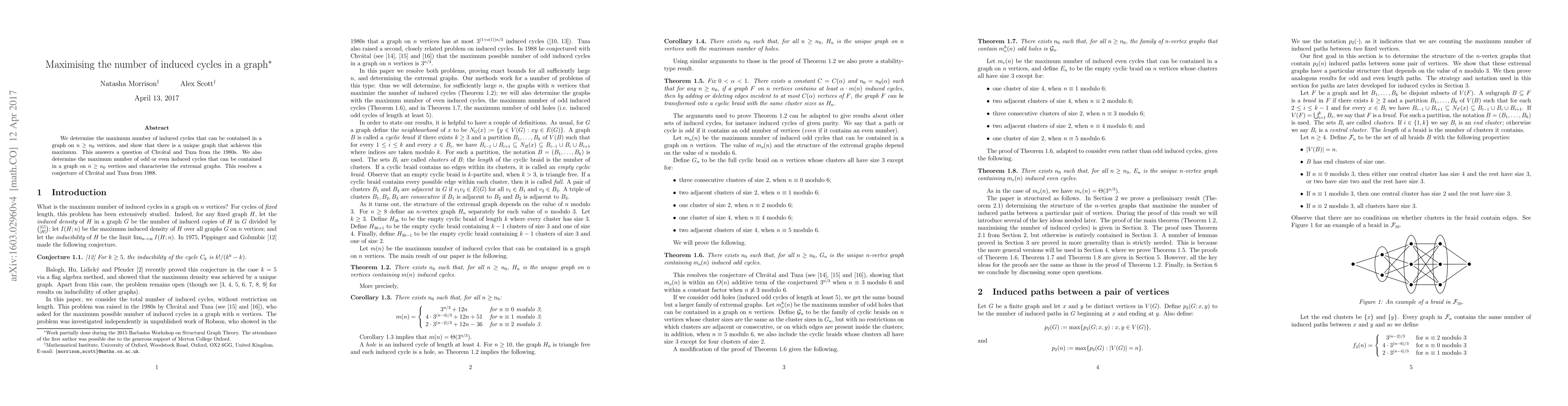 This research contributes to extremal graph theory by providing a comprehensive solution to the problem of maximizing induced cycles in graphs, which has implications for understanding the structural properties of graphs and their cycle distributions.