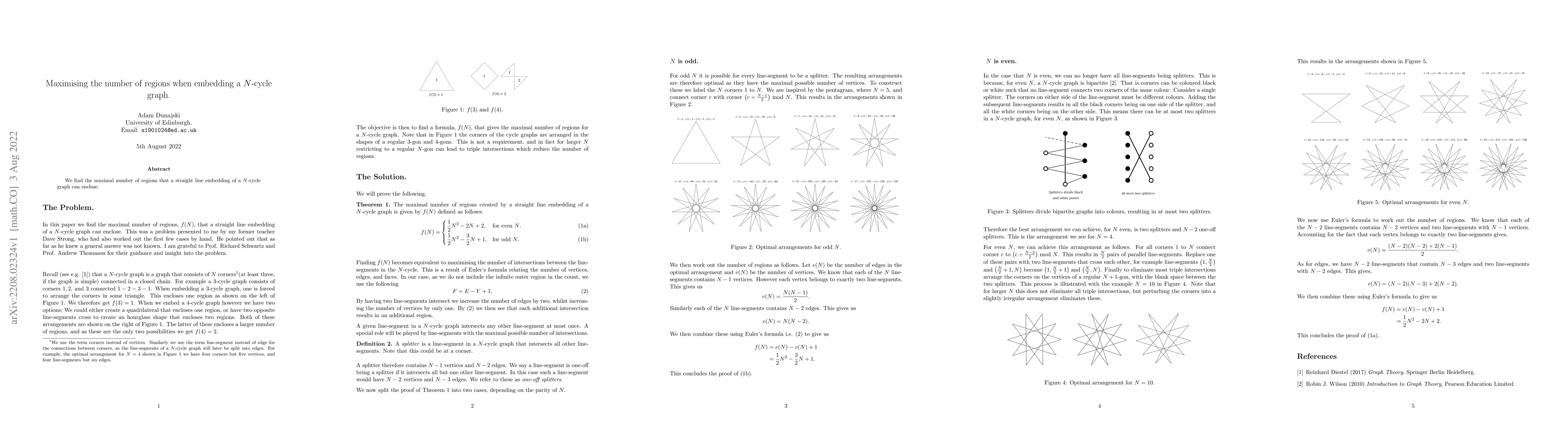 We find the maximal number of regions that a straight line embedding of a N-cycle graph can enclose.