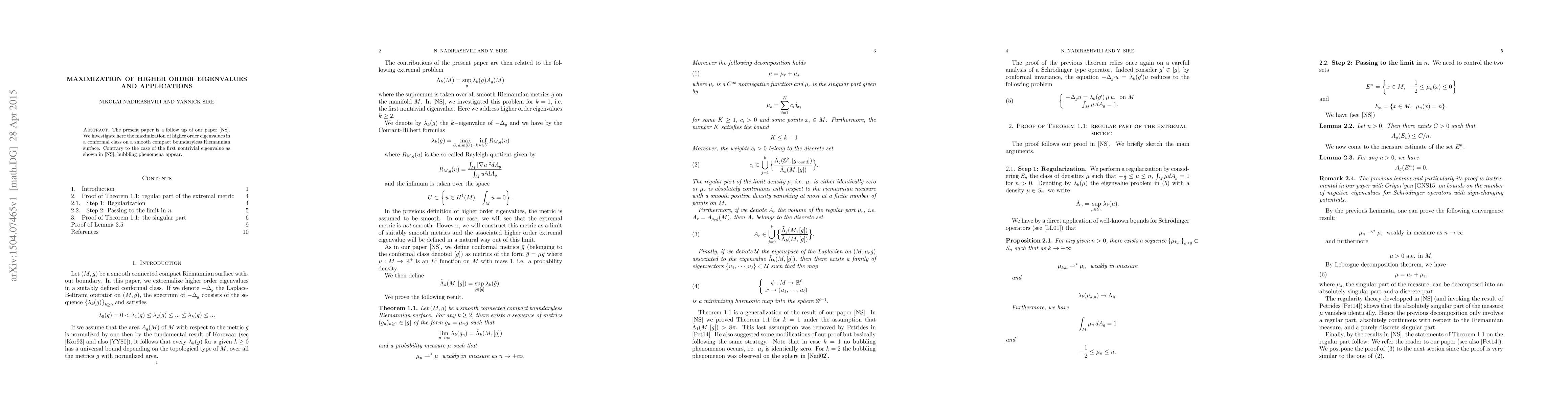The present paper is a follow up of our paper \cite{nS}. We investigate here the maximization of higher order eigenvalues in a conformal class on a smooth compact boundaryless Riemannian surface. Contrary to the case of the first nontrivial eigenvalue as shown in \cite{nS}, bubbling phenomena appear.