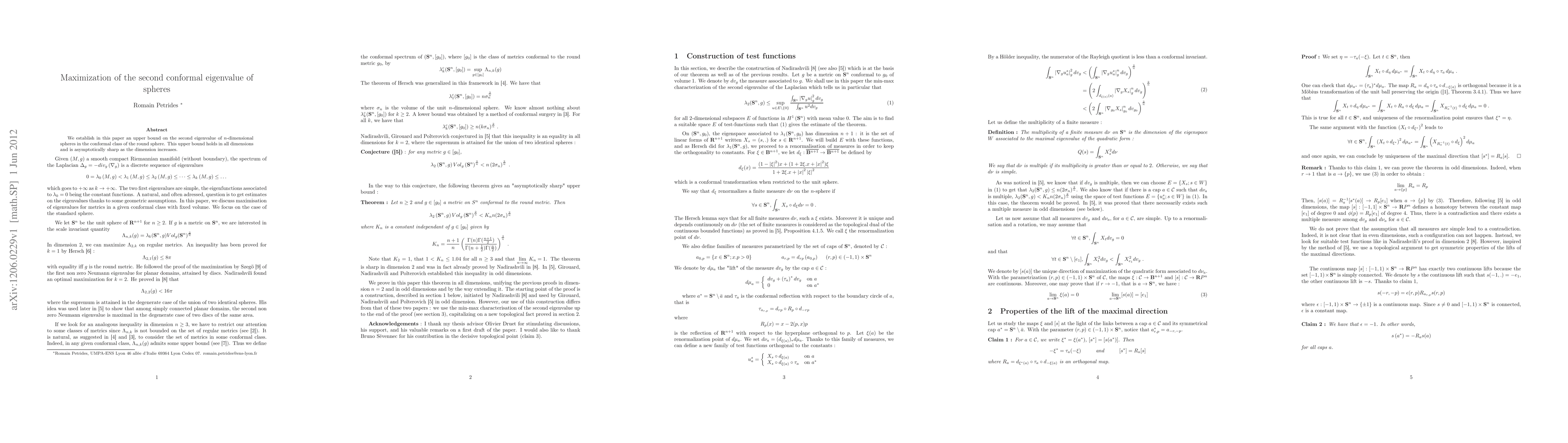 Researchers found an upper bound on the second conformal eigenvalue of n-dimensional spheres, with the bound being asymptotically sharp as the dimension increases.