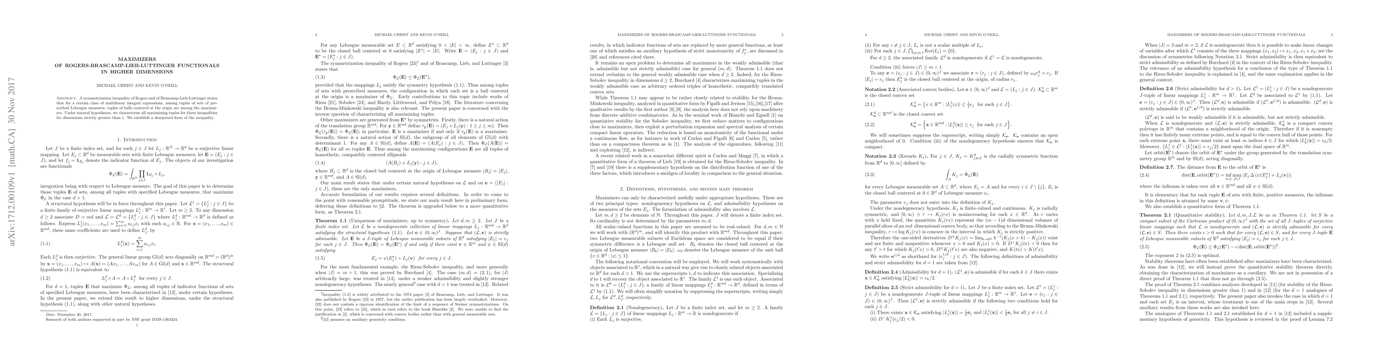 This paper establishes a symmetrization inequality that identifies tuples of balls centered at the origin as maximizers for certain multilinear integral expressions in higher dimensions, providing insights into the behavior of Rogers-Brascamp-Lieb-Luttinger functionals.