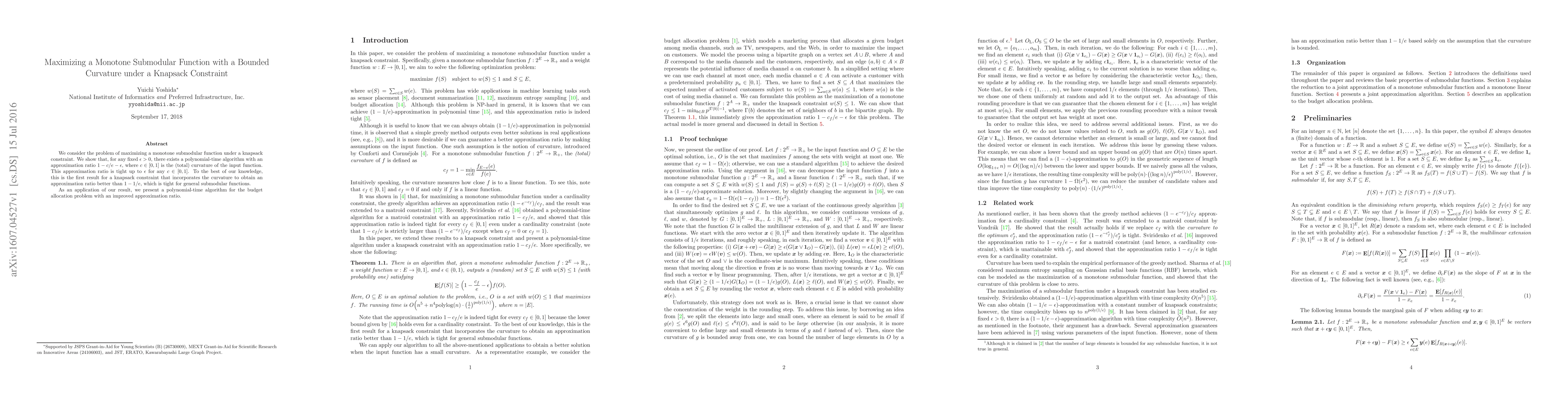 This paper presents a polynomial-time algorithm to maximize a monotone submodular function under a knapsack constraint, achieving an approximation ratio of $1-c/e-\epsilon$ where $c$ is the function's curvature. This result is the first to incorporate curvature for a knapsack constraint, improving upon the general $1-1/e$ approximation ratio.