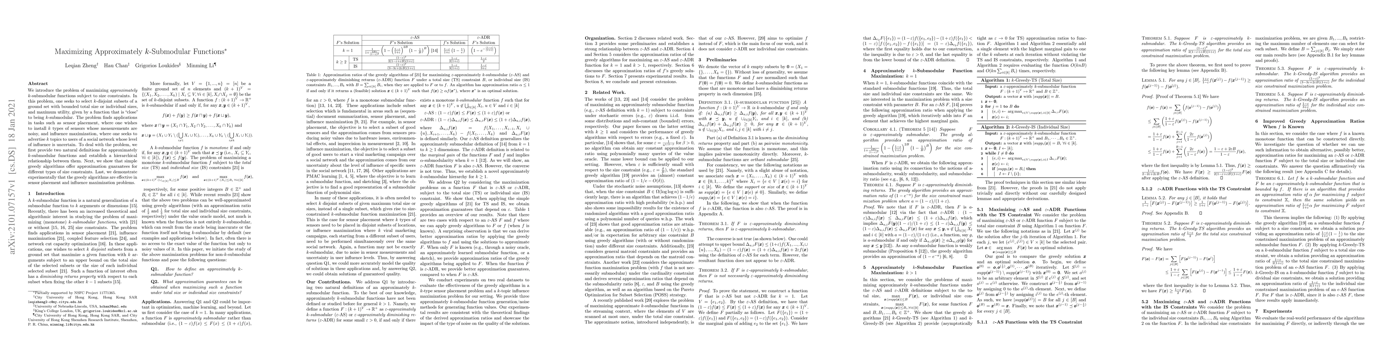 This paper addresses the problem of maximizing approximately $k$-submodular functions under size constraints, introducing two definitions and proving their hierarchical relationship. It demonstrates that greedy algorithms provide effective approximation guarantees and validates their practical effectiveness through experiments in sensor placement and influence maximization.