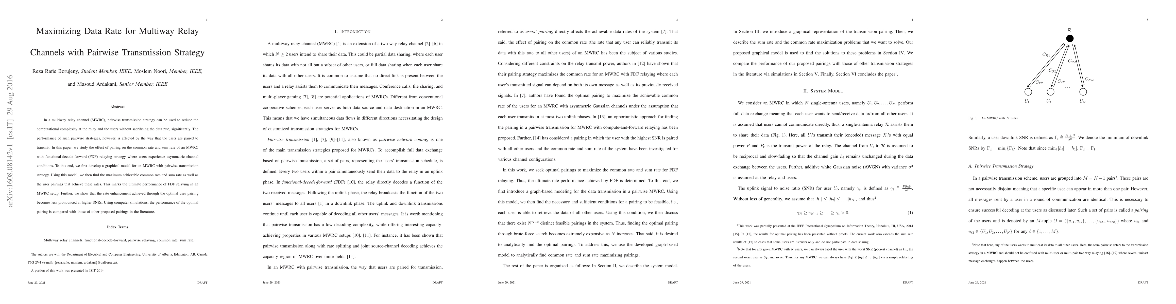 This paper investigates the optimal pairing strategy for maximizing data rates in multiway relay channels using a pairwise transmission approach with functional-decode-forward relaying. It develops a graphical model to determine the maximum achievable common rate and sum rate, demonstrating that optimal pairings yield significant rate enhancements, though the effect diminishes at higher SNRs.