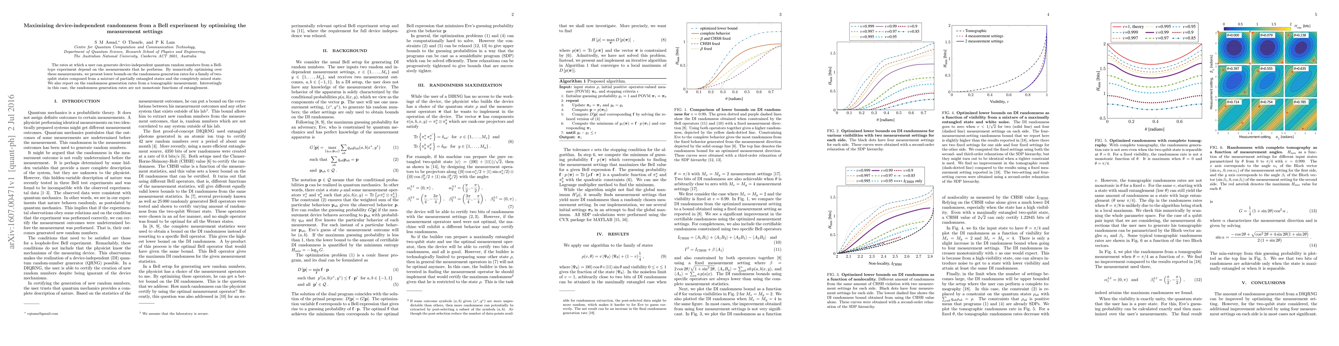 This paper optimizes measurement settings in Bell experiments to maximize device-independent quantum random number generation rates. It presents lower bounds for a mixture of partially entangled and mixed states, and finds that randomness rates from tomographic measurements are not necessarily monotonic with entanglement.
