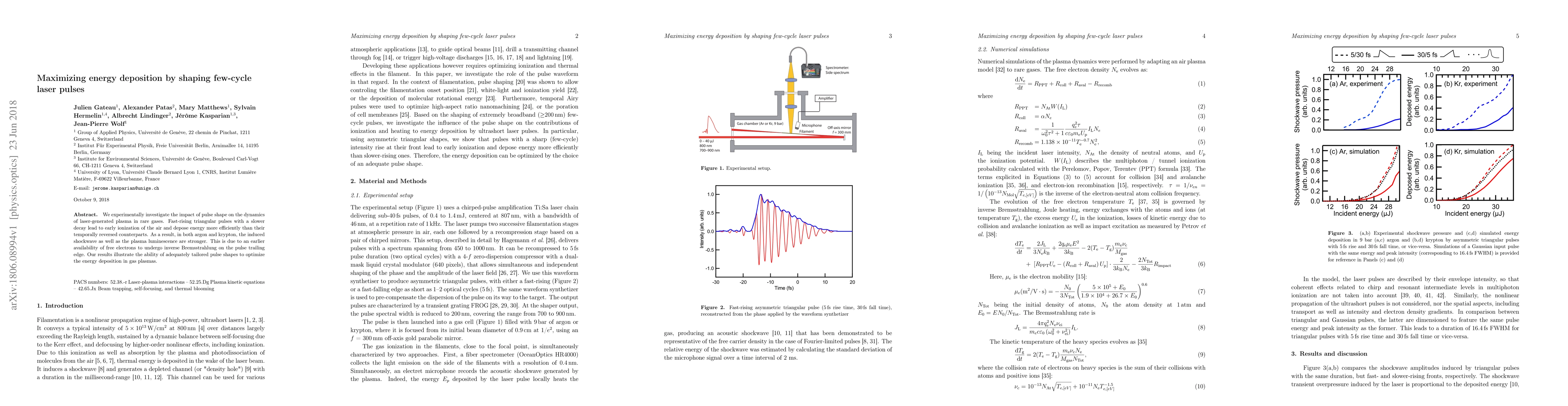 Tailoring laser pulse shapes can significantly improve energy deposition in gas plasmas, leading to stronger shockwaves and plasma luminescence.