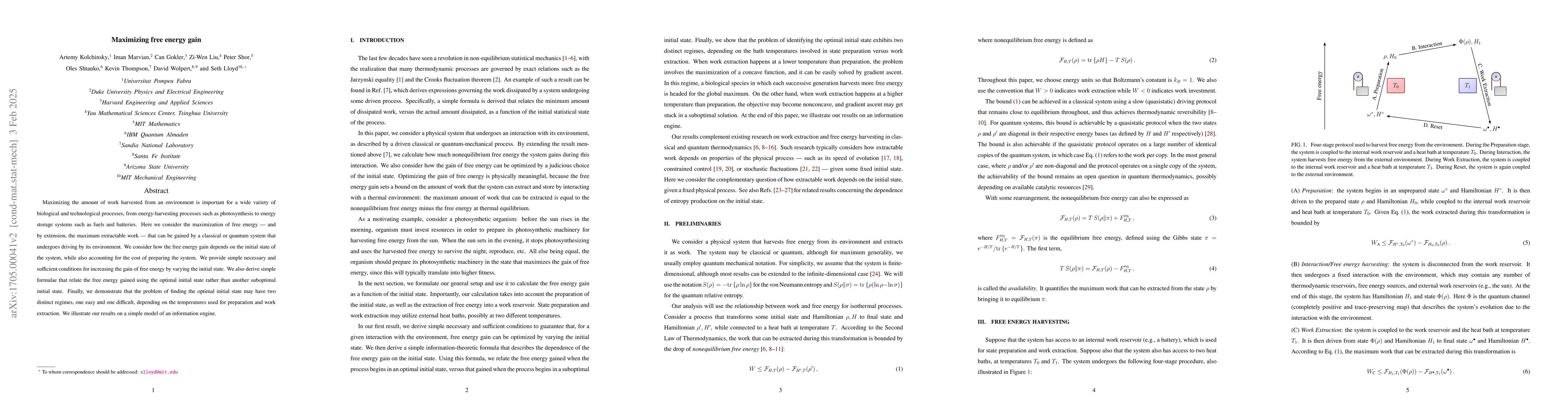 Researchers derived closed-form solutions for maximizing free energy gain from classical and quantum stochastic processes, showing that the problem is convex and solvable via gradient descent.