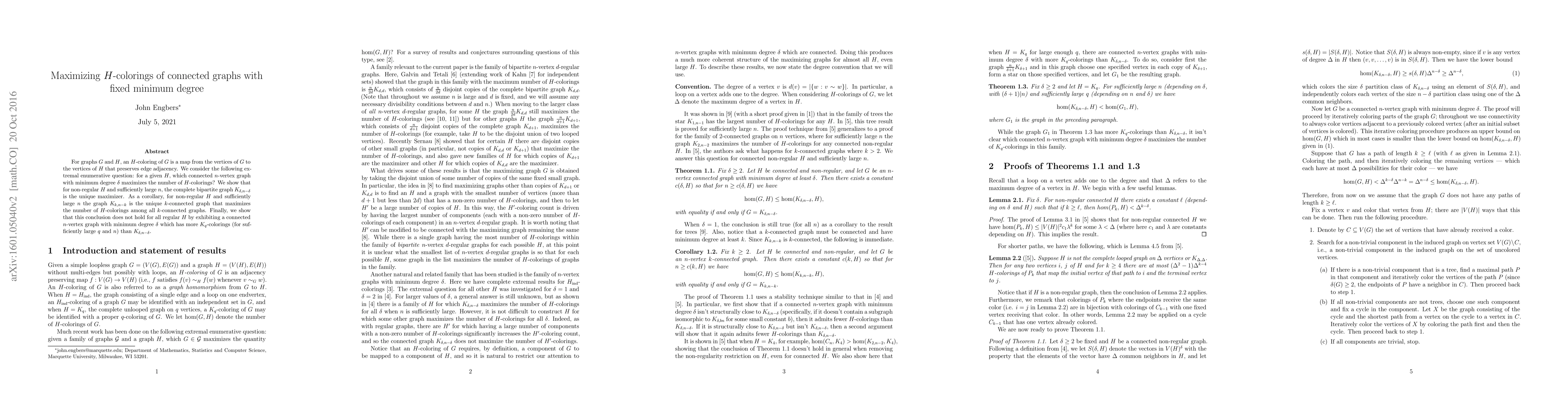 This paper studies the extremal number of $H$-colorings for connected graphs with a fixed minimum degree, proving that for sufficiently large $n$ and non-regular $H$, the complete bipartite graph $K_{\delta,n-\delta}$ maximizes $H$-colorings. It also highlights that this property does not hold for regular $H$.