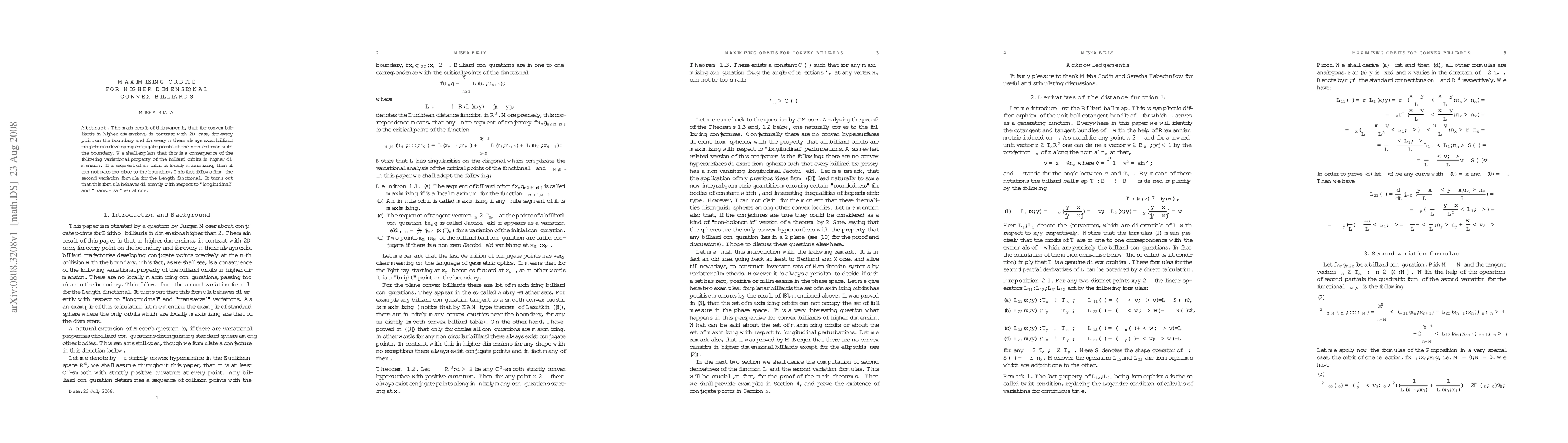 The main result of this paper is, that for convex billiards in higher dimensions, in contrast with 2D case, for every point on the boundary and for every $n$ there always exist billiard trajectories developing conjugate points at the $n$-th collision with the boundary. We shall explain that this is a consequence of the following variational property of the billiard orbits in higher dimension. If a segment of an orbit is locally maximizing, then it can not pass too close to the boundary. This fact follows from the second variation formula for the Length functional. It turns out that this formula behaves differently with respect to "longitudinal" and "transversal" variations.