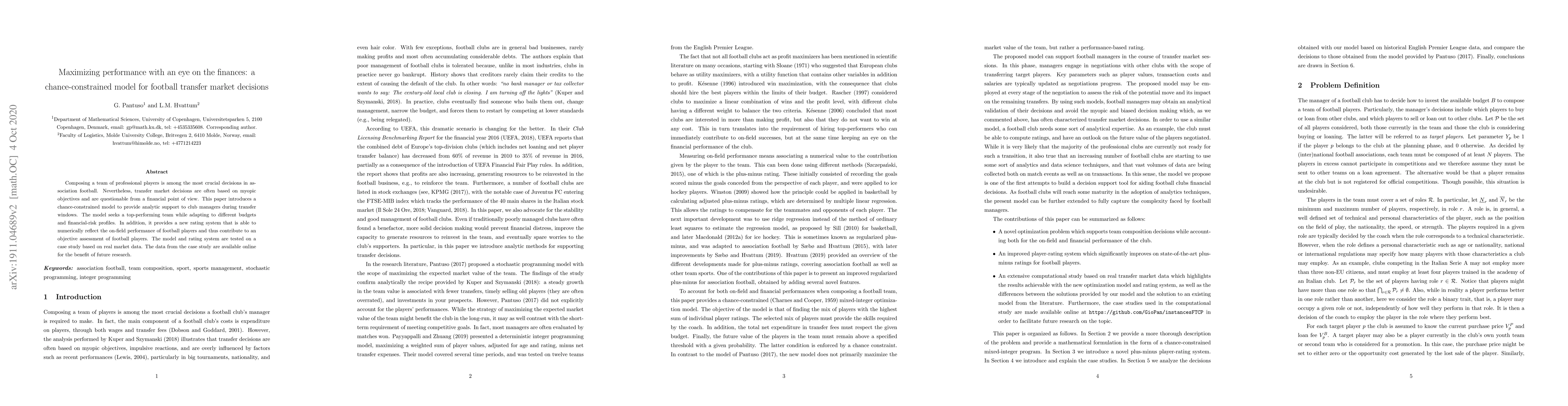A new chance-constrained model helps football clubs make informed transfer decisions that balance team performance with budget constraints, providing a more objective assessment of player ratings.