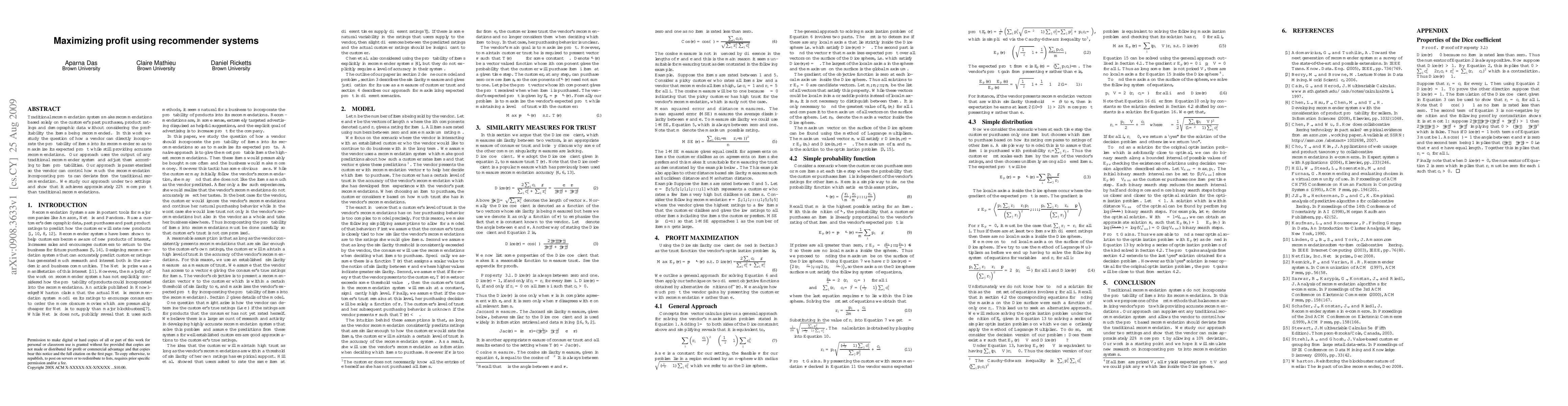 Traditional recommendation systems make recommendations based solely on the customer's past purchases, product ratings and demographic data without considering the profitability the items being recommended. In this work we study the question of how a vendor can directly incorporate the profitability of items into its recommender so as to maximize its expected profit while still providing accurate recommendations. Our approach uses the output of any traditional recommender system and adjust them according to item profitabilities. Our approach is parameterized so the vendor can control how much the recommendation incorporating profits can deviate from the traditional recommendation. We study our approach under two settings and show that it achieves approximately 22% more profit than traditional recommendations.