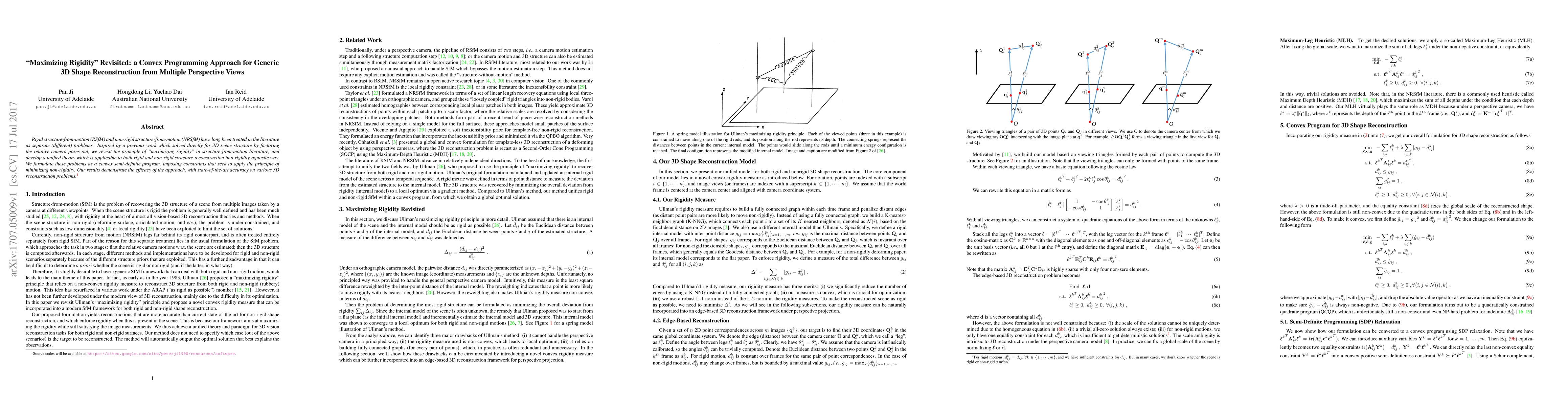 This paper presents a unified convex programming approach for both rigid and non-rigid 3D shape reconstruction from multiple perspective views, improving upon previous methods by minimizing non-rigidity. Results show state-of-the-art accuracy in various reconstruction problems.