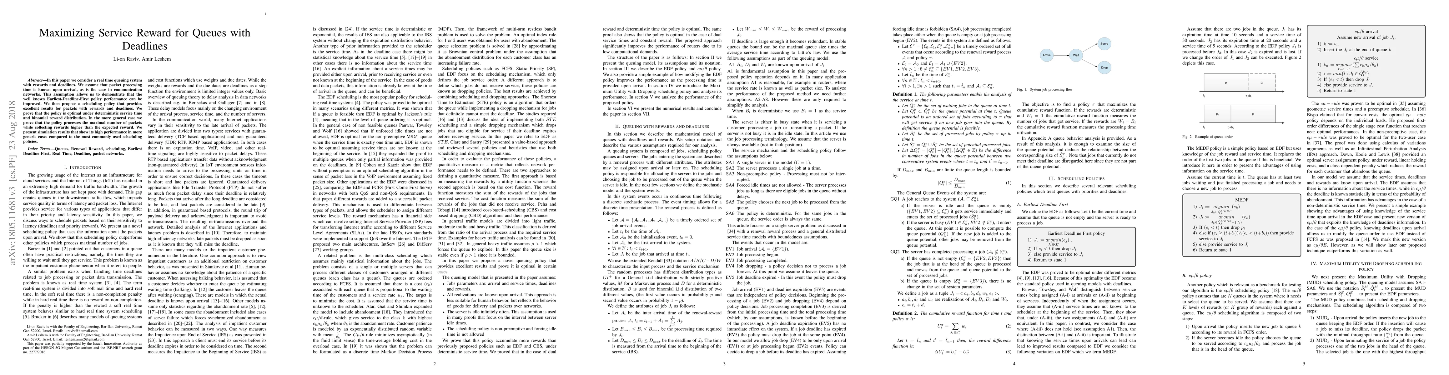 This paper proposes a new scheduling policy to optimize reward collection in real-time queuing systems with known packet processing times and deadlines. The policy outperforms the Earliest-Deadline-First method and is shown to be optimal under certain conditions, while maximizing packet processing and reward collection in more general scenarios.