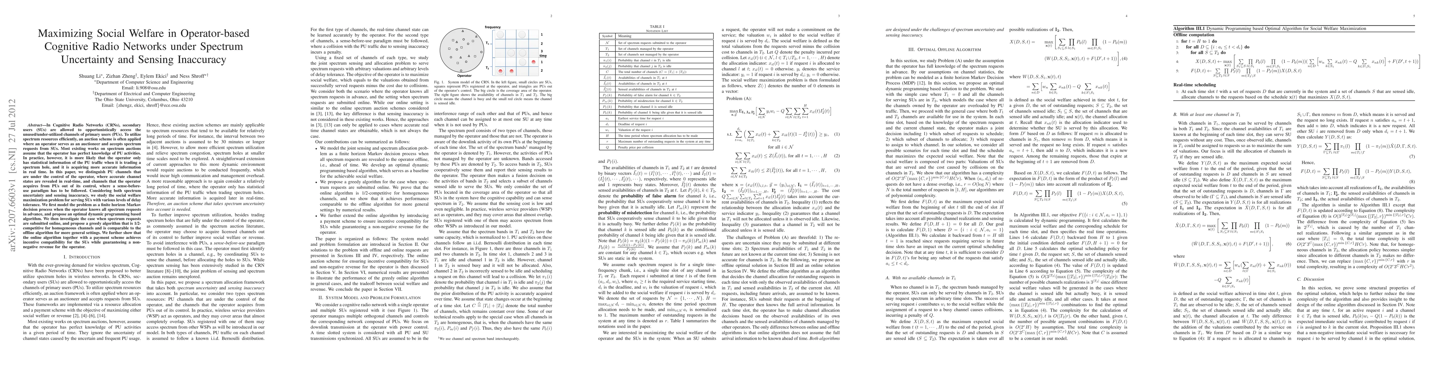 In Cognitive Radio Networks (CRNs), secondary users (SUs) are allowed to opportunistically access the unused/under-utilized channels of primary users (PUs). To utilize spectrum resources efficiently, an auction scheme is often applied where an operator serves as an auctioneer and accepts spectrum requests from SUs. Most existing works on spectrum auctions assume that the operator has perfect knowledge of PU activities. In practice, however, it is more likely that the operator only has statistical information of the PU traffic when it is trading a spectrum hole, and it is acquiring more accurate information in real time. In this paper, we distinguish PU channels that are under the control of the operator, where accurate channel states are revealed in real-time, and channels that the operator acquires from PUs out of its control, where a sense-before-use paradigm has to be followed. Considering both spectrum uncertainty and sensing inaccuracy, we study the social welfare maximization problem for serving SUs with various levels of delay tolerance. We first model the problem as a finite horizon Markov decision process when the operator knows all spectrum requests in advance, and propose an optimal dynamic programming based algorithm. We then investigate the case when spectrum requests are submitted online, and propose a greedy algorithm that is 1/2-competitive for homogeneous channels and is comparable to the offline algorithm for more general settings. We further show that the online algorithm together with a payment scheme achieves incentive compatibility for the SUs while guaranteeing a non-negative revenue for the operator.
