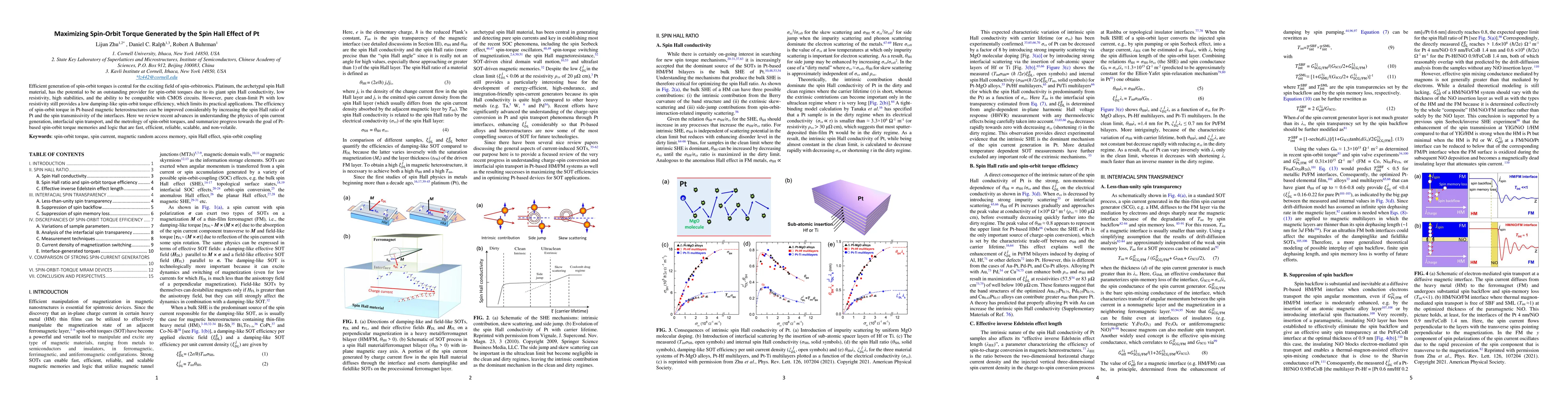 This paper reviews recent advancements in enhancing spin-orbit torques generated by platinum's spin Hall effect, focusing on improving efficiency through increased spin Hall ratio and interface spin transmissivity for practical spin-orbitronic applications. It summarizes progress towards developing fast, reliable, and scalable Pt-based spin-orbit torque memories and logic devices.