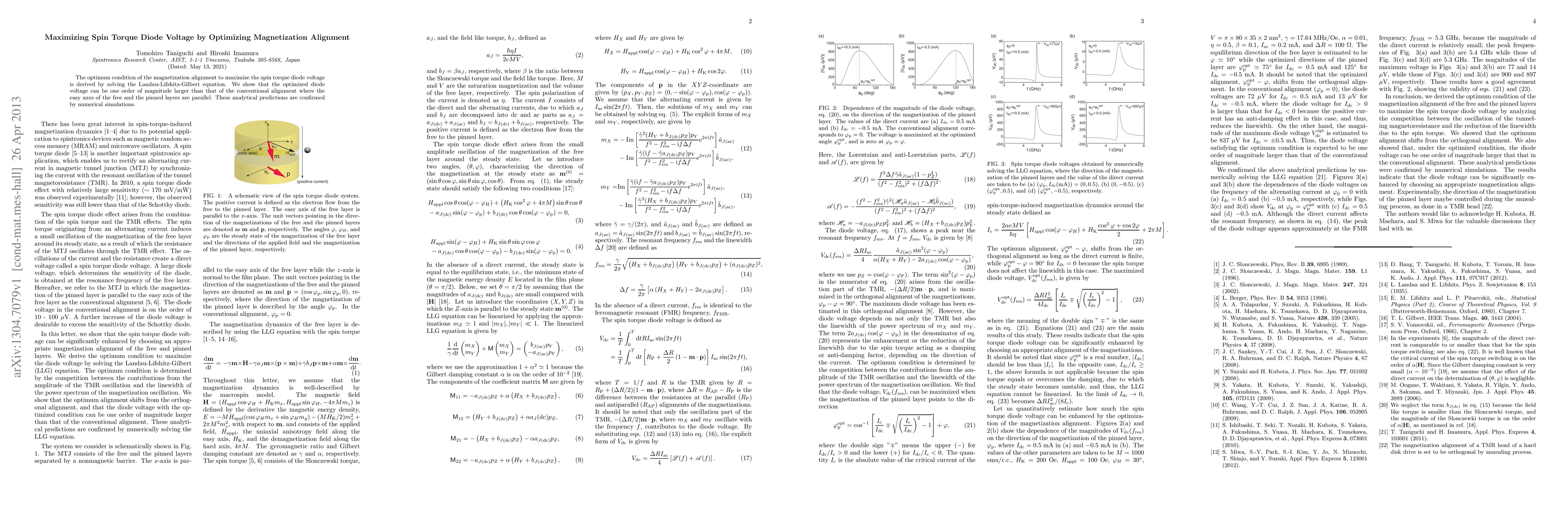 This paper derives the optimal magnetization alignment to maximize spin torque diode voltage using the Landau-Lifshitz-Gilbert equation, showing that optimized alignment can yield a diode voltage one order of magnitude higher than conventional parallel alignment, confirmed by numerical simulations.