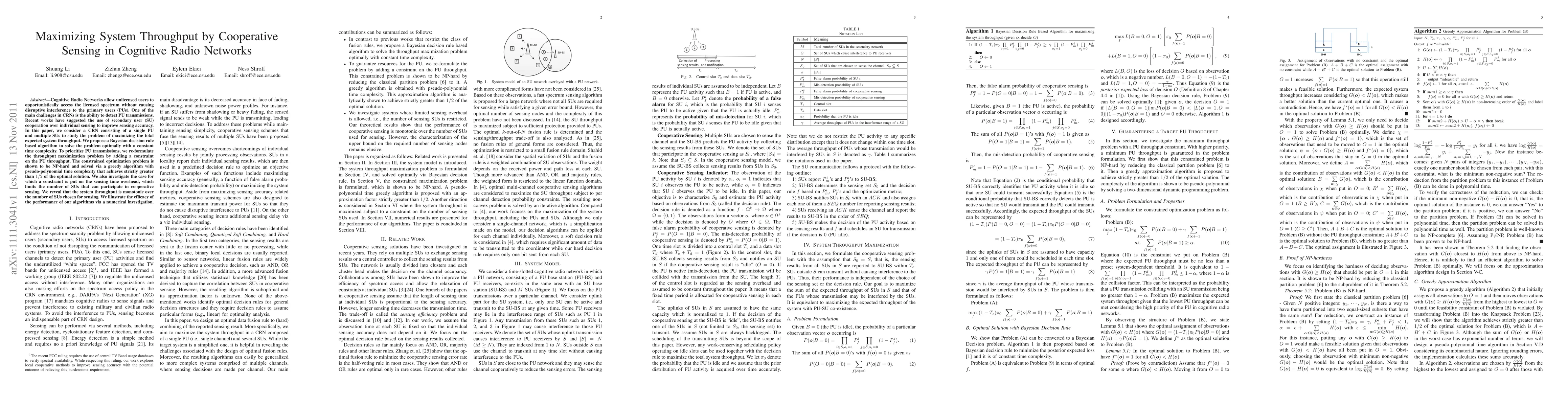 This paper proposes a cooperative sensing method in Cognitive Radio Networks to maximize system throughput by leveraging secondary users' collaboration over individual sensing. It introduces a Bayesian decision rule algorithm to optimize throughput while prioritizing primary user transmissions, employing a greedy algorithm to address the NP-hard problem. The study also examines the impact of sensing time constraints on the number of participating secondary users.