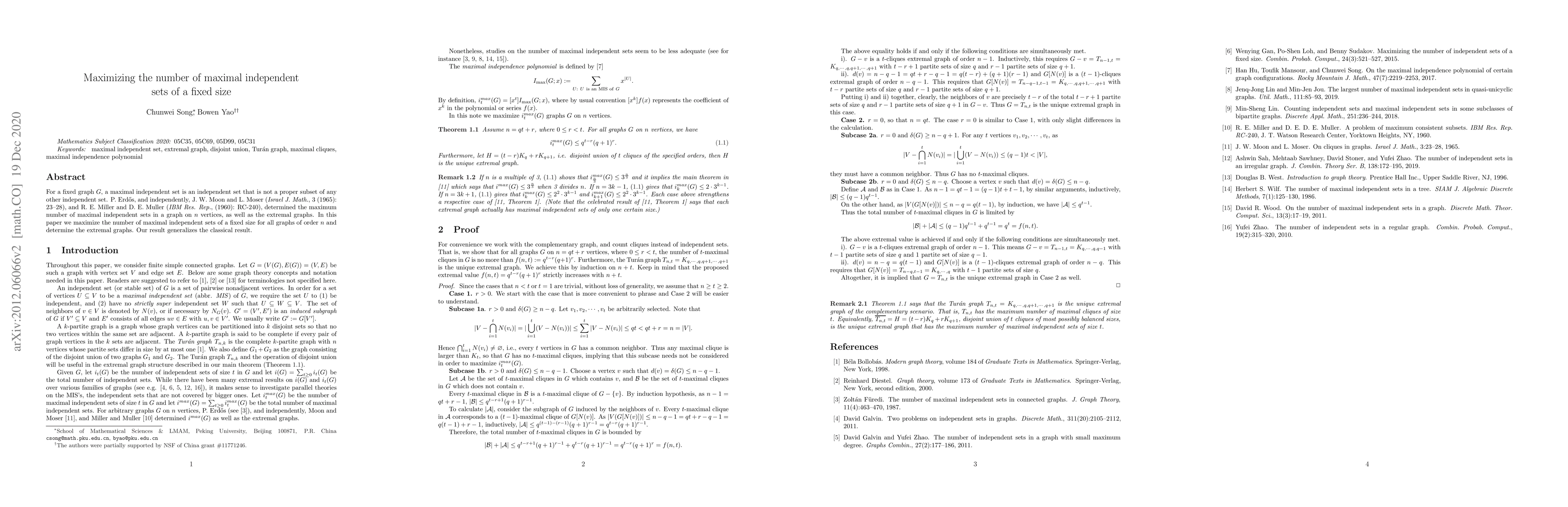 For a fixed graph G, a maximal independent set is an independent set that is not a proper subset of any other independent set. P. Erd\"os, and independently, J. W. Moon and L. Moser, and R. E. Miller and D. E. Muller, determined the maximum number of maximal independent sets in a graph on n vertices, as well as the extremal graphs. In this paper we maximize the number of maximal independent sets of a fixed size for all graphs of order n and determine the extremal graphs. Our result generalizes the classical result.