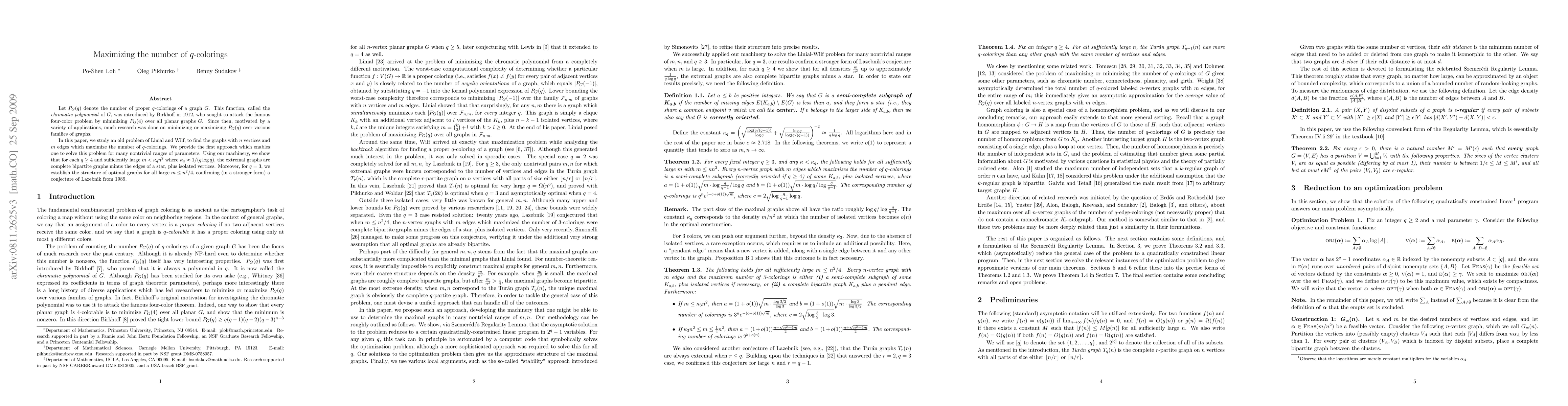 This paper investigates the graphs that maximize the number of q-colorings, addressing a problem posed by Linial and Wilf. It finds that for q >= 4 and sufficiently large m, the optimal graphs are complete bipartite graphs minus the edges of a star, plus isolated vertices. For q = 3, it confirms the structure of optimal graphs for large m, strengthening a 1989 conjecture by Lazebnik.