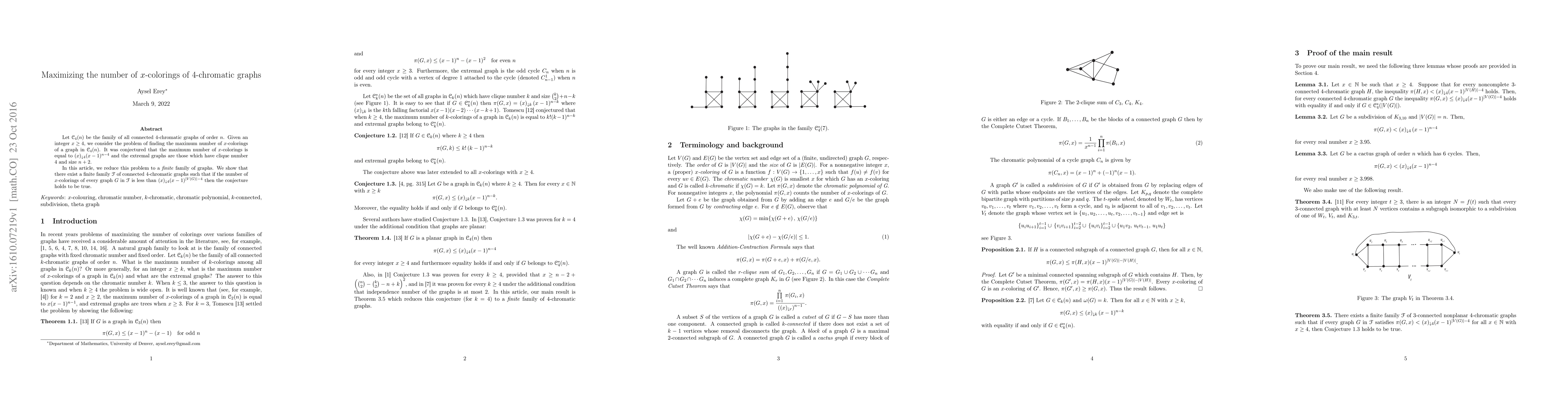 This paper investigates the maximum number of $x$-colorings for connected $4$-chromatic graphs, aiming to validate a conjecture. It demonstrates that proving the conjecture reduces to checking a finite family of specific graphs, thus simplifying the original problem.