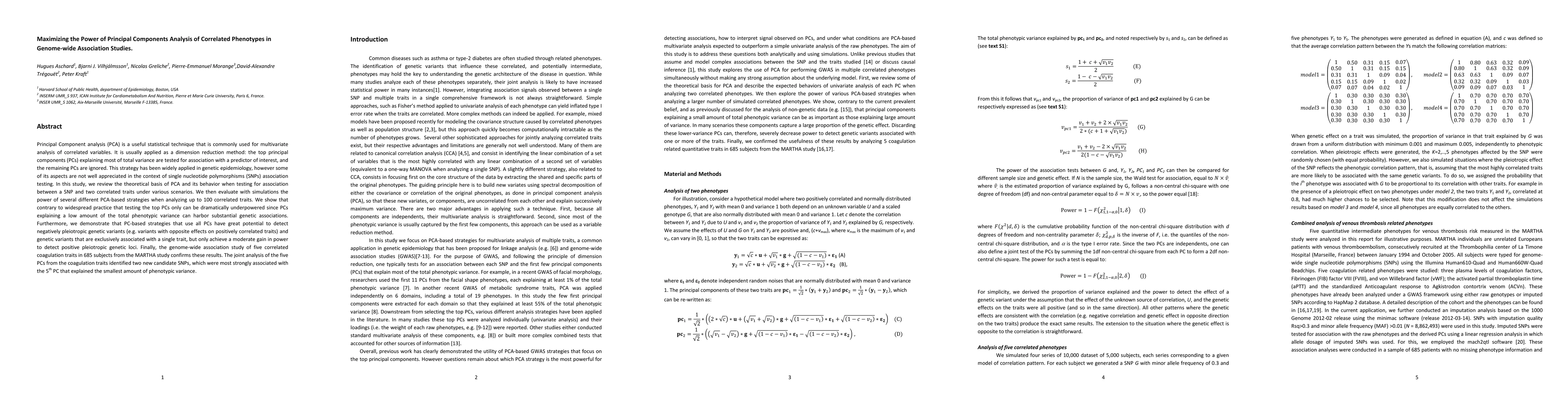 This paper reviews the application of Principal Component Analysis (PCA) in genome-wide association studies (GWAS), demonstrating that using all PCs, not just the top ones, can significantly enhance the detection of genetic associations, especially for negatively pleiotropic and single-trait variants. Simulation and empirical analysis of coagulation traits confirm that lower variance PCs can harbor important genetic information.