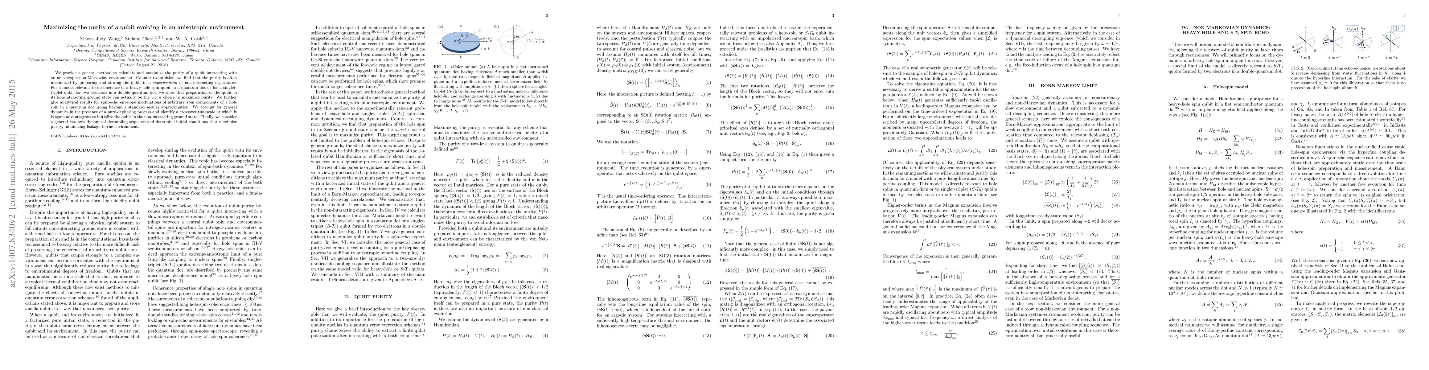 We provide a general method to calculate and maximize the purity of a qubit interacting with an anisotropic non-Markovian environment. Counter to intuition, we find that the purity is often maximized by preparing and storing the qubit in a superposition of non-interacting eigenstates. For a model relevant to decoherence of a heavy-hole spin qubit in a quantum dot or for a singlet-triplet qubit for two electrons in a double quantum dot, we show that preparation of the qubit in its non-interacting ground state can actually be the worst choice to maximize purity. We further give analytical results for spin-echo envelope modulations of arbitrary spin components of a hole spin in a quantum dot, going beyond a standard secular approximation. We account for general dynamics in the presence of a pure-dephasing process and identify a crossover timescale at which it is again advantageous to initialize the qubit in the non-interacting ground state. Finally, we consider a general two-axis dynamical decoupling sequence and determine initial conditions that maximize purity, minimizing leakage to the environment.