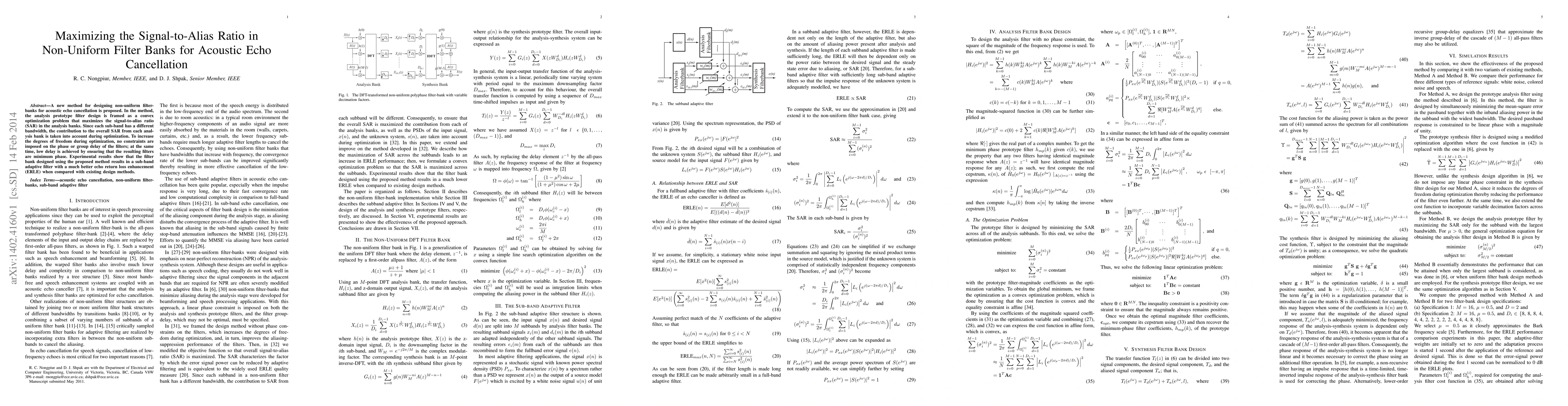 A new method for designing non-uniform filter-banks for acoustic echo cancellation is proposed. In the method, the analysis prototype filter design is framed as a convex optimization problem that maximizes the signal-to-alias ratio (SAR) in the analysis banks. Since each sub-band has a different bandwidth, the contribution to the overall SAR from each analysis bank is taken into account during optimization. To increase the degrees of freedom during optimization, no constraints are imposed on the phase or group delay of the filters; at the same time, low delay is achieved by ensuring that the resulting filters are minimum phase. Experimental results show that the filter bank designed using the proposed method results in a sub-band adaptive filter with a much better echo return loss enhancement (ERLE) when compared with existing design methods.
