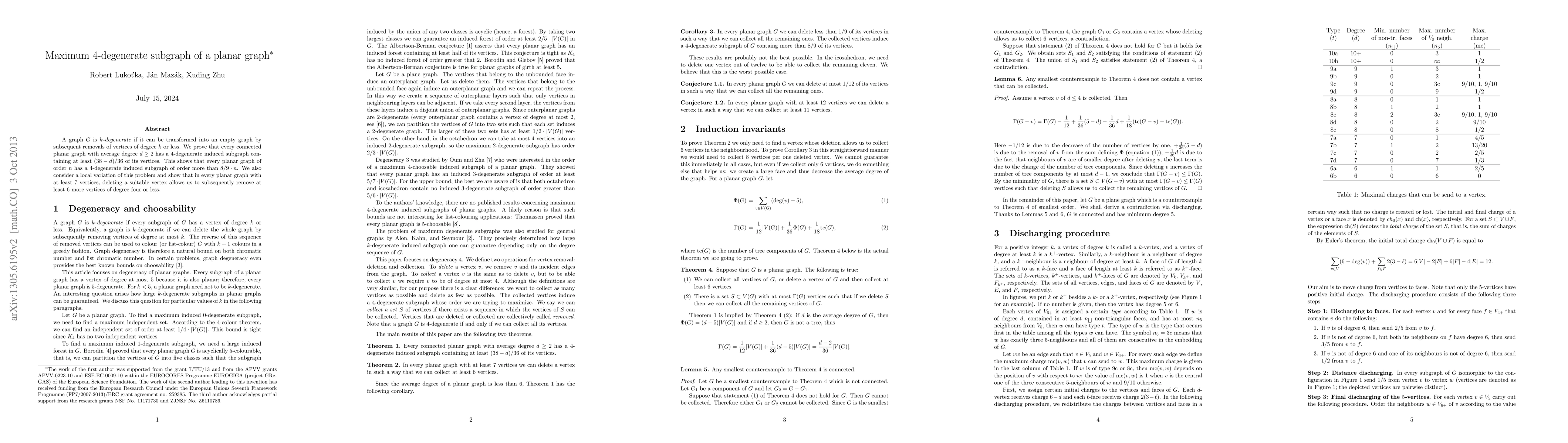 A study found that every connected planar graph with average degree 2 or higher has a 4-degenerate induced subgraph containing at least 89% of its vertices.