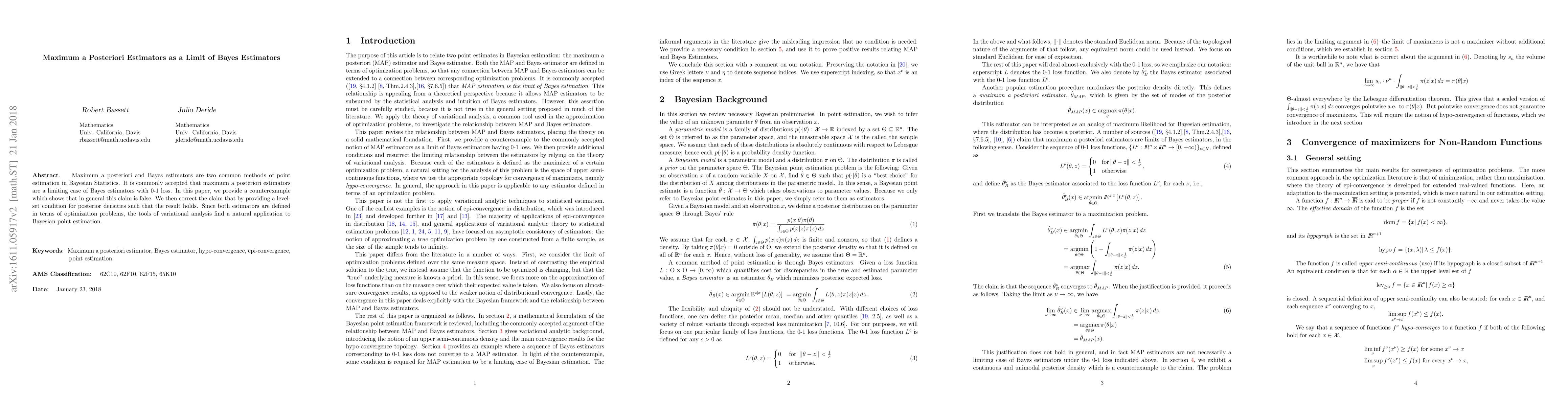 Maximum a posteriori and Bayes estimators are two common methods of point estimation in Bayesian Statistics. It is commonly accepted that maximum a posteriori estimators are a limiting case of Bayes estimators with 0-1 loss. In this paper, we provide a counterexample which shows that in general this claim is false. We then correct the claim that by providing a level-set condition for posterior densities such that the result holds. Since both estimators are defined in terms of optimization problems, the tools of variational analysis find a natural application to Bayesian point estimation.